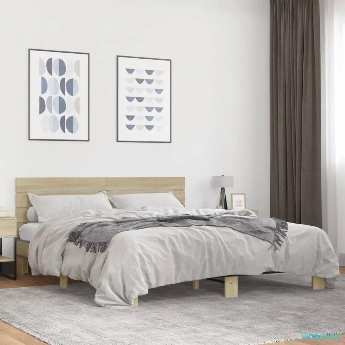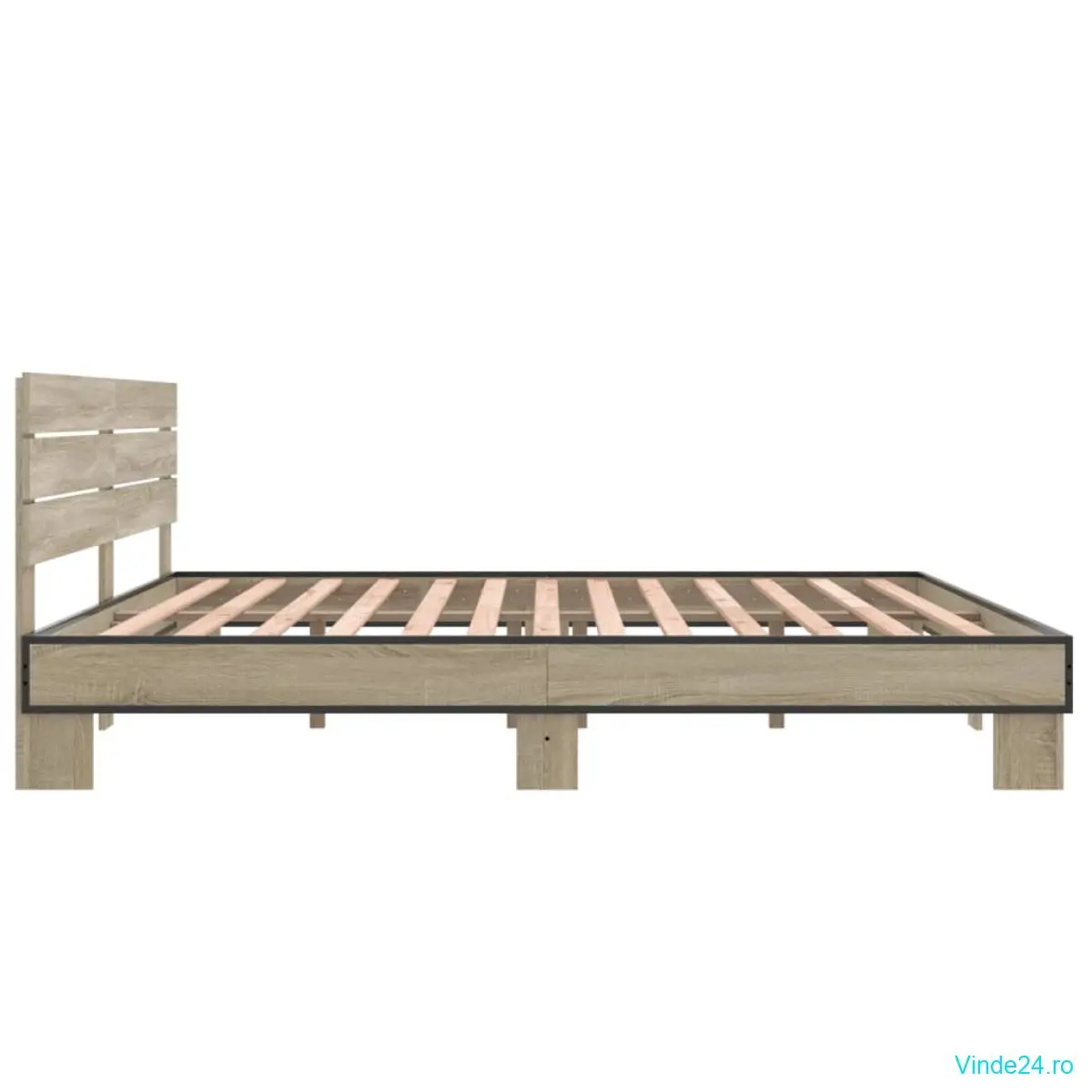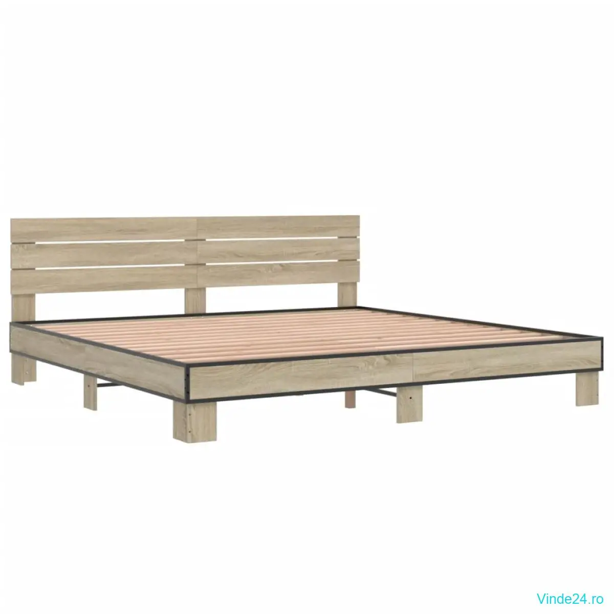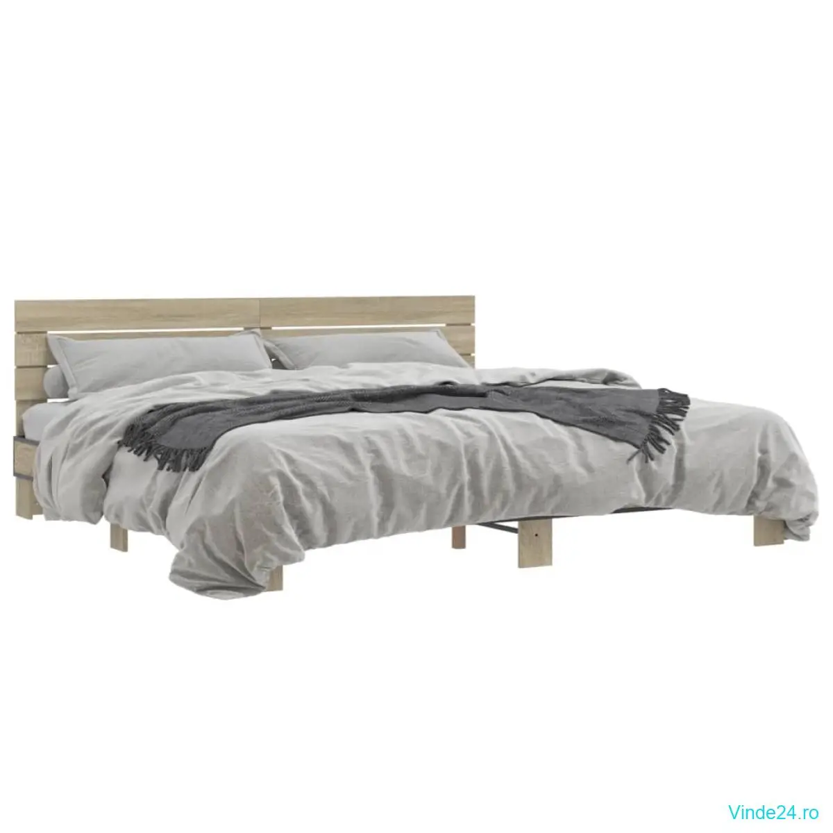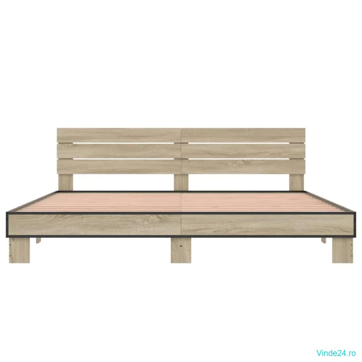 vidaXL Cadru de pat, stejar sonoma, 180x200cm, lemn prelucrat și metal