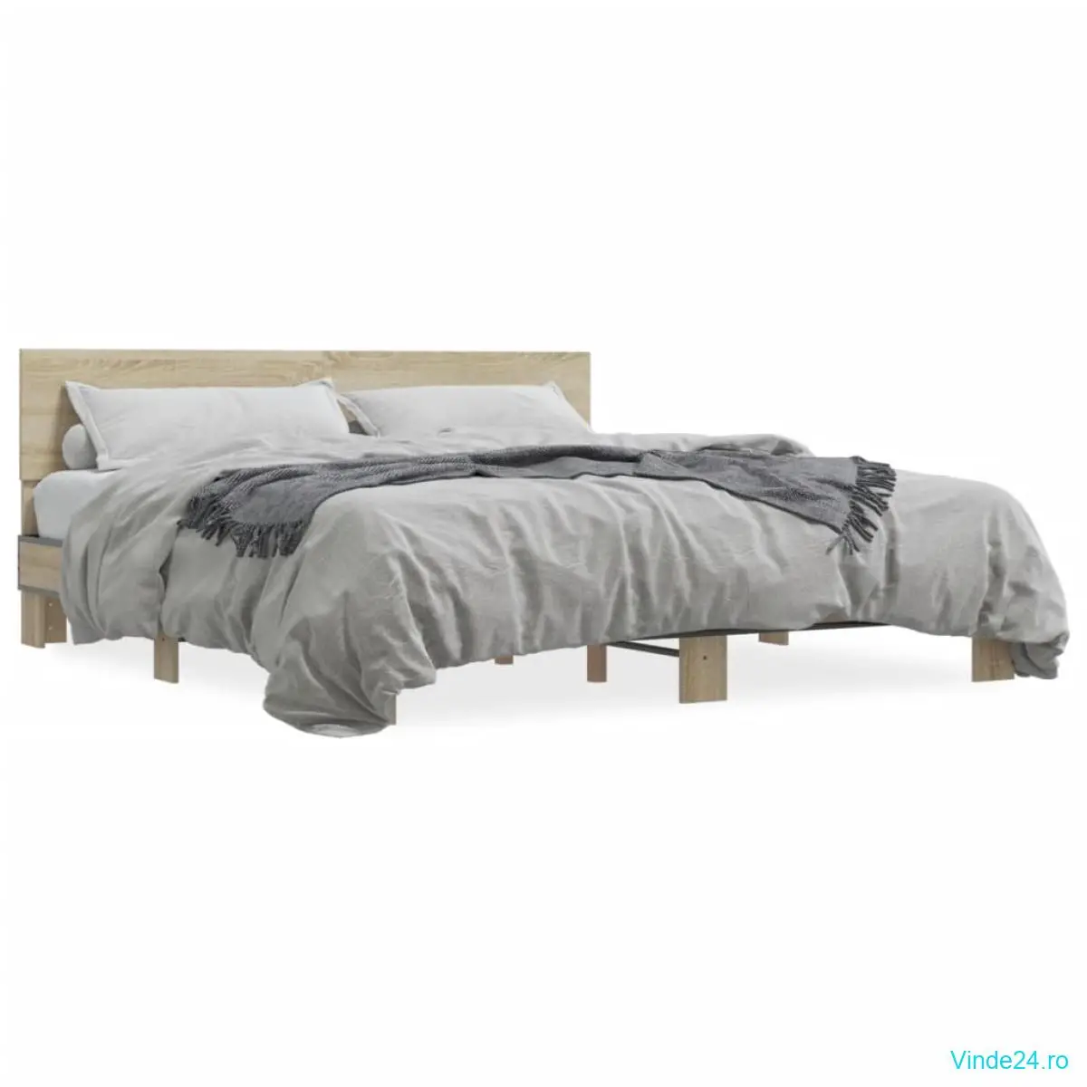 vidaXL Cadru de pat, stejar sonoma, 200x200cm, lemn prelucrat și metal