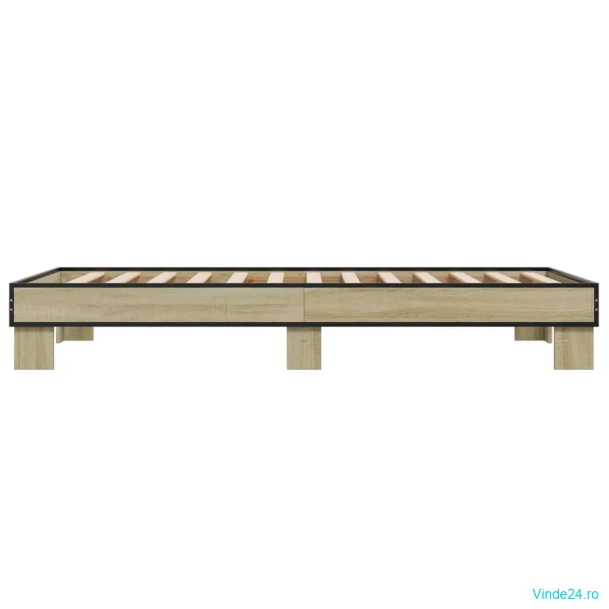 vidaXL Cadru de pat, stejar sonoma, 75x190 cm, lemn prelucrat și metal