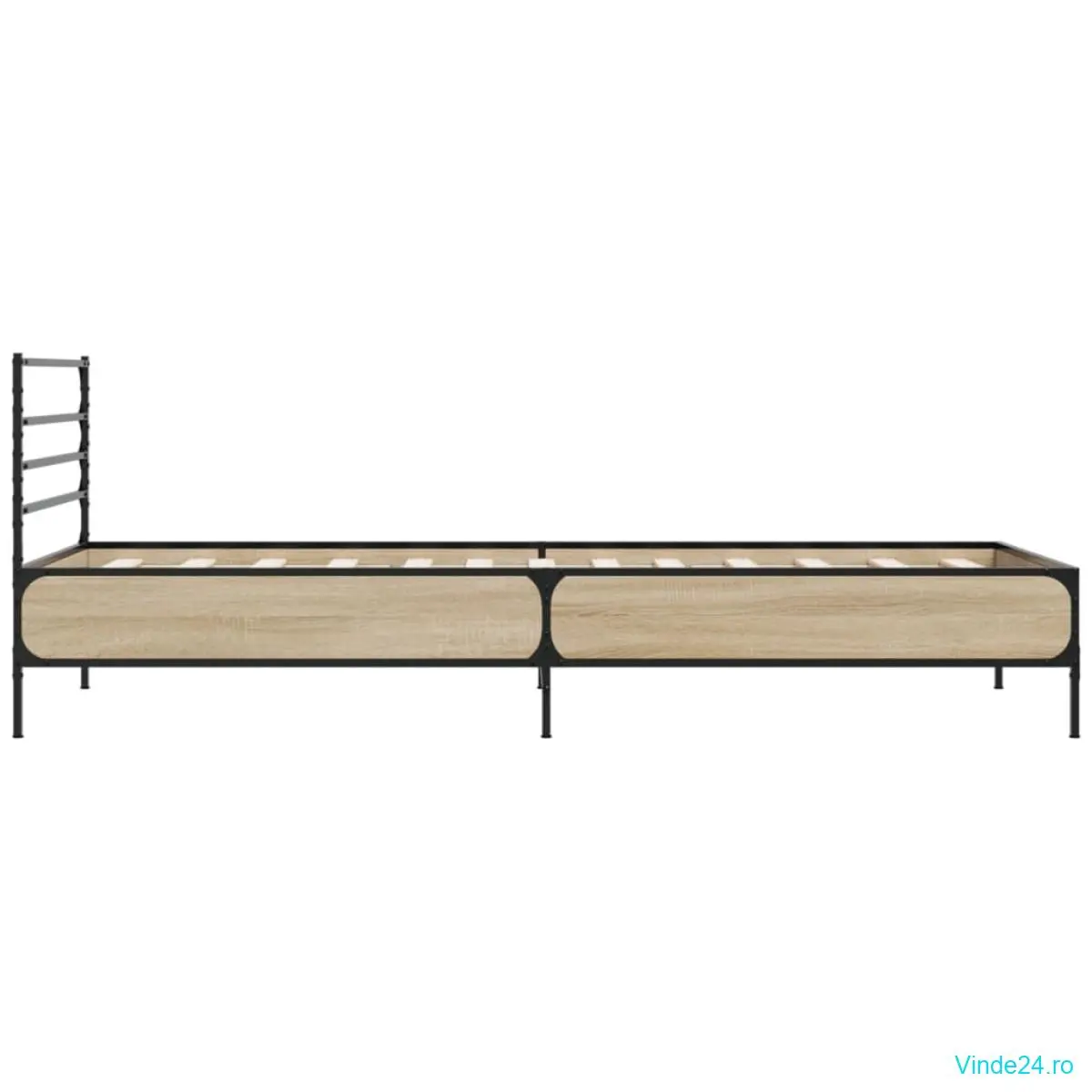 vidaXL Cadru de pat, stejar sonoma, 90x200 cm, lemn prelucrat și metal
