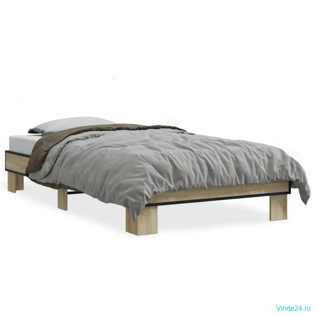 vidaXL Cadru de pat, stejar sonoma, 90x200 cm, lemn prelucrat și metal