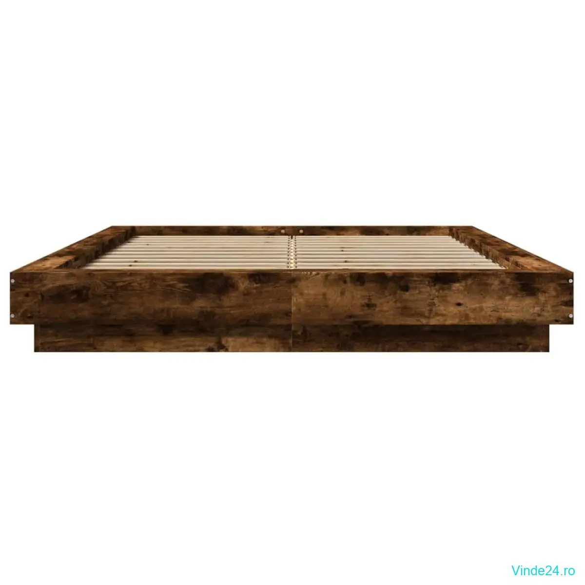 vidaXL Cadru pat cu lumini LED stejar fumuriu 120x200cm lemn prelucrat