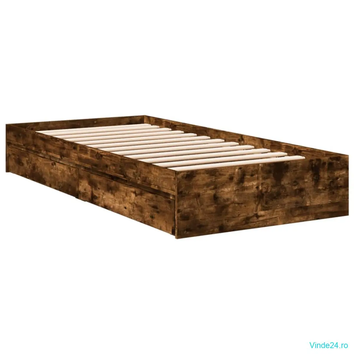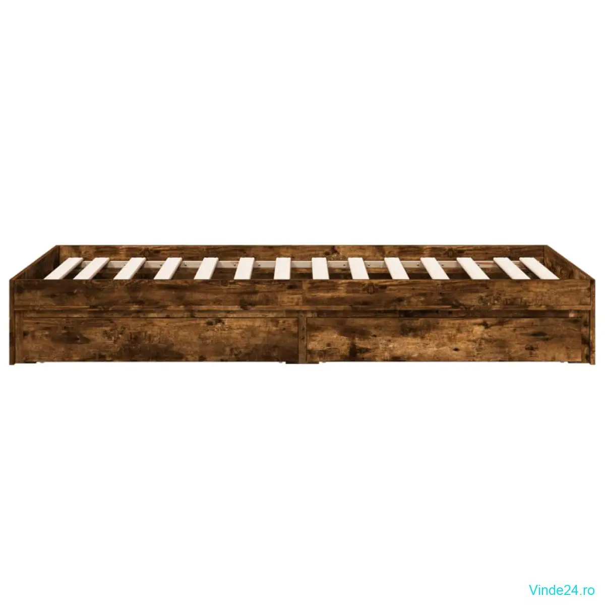 vidaXL Cadru pat cu sertare stejar fumuriu 100x200 cm lemn prelucrat