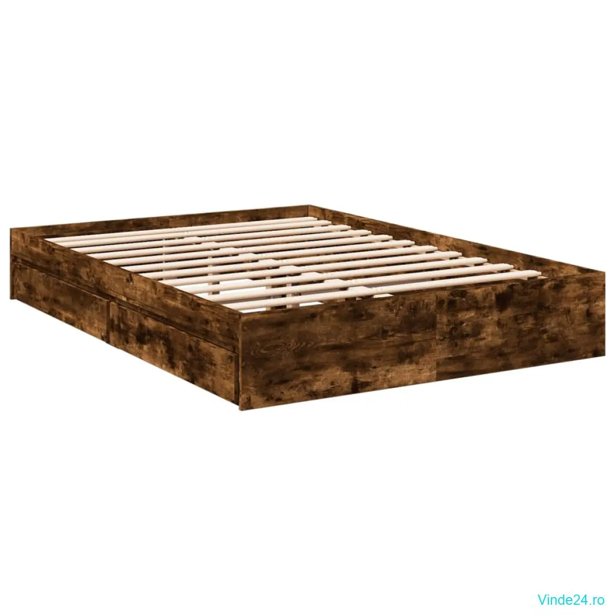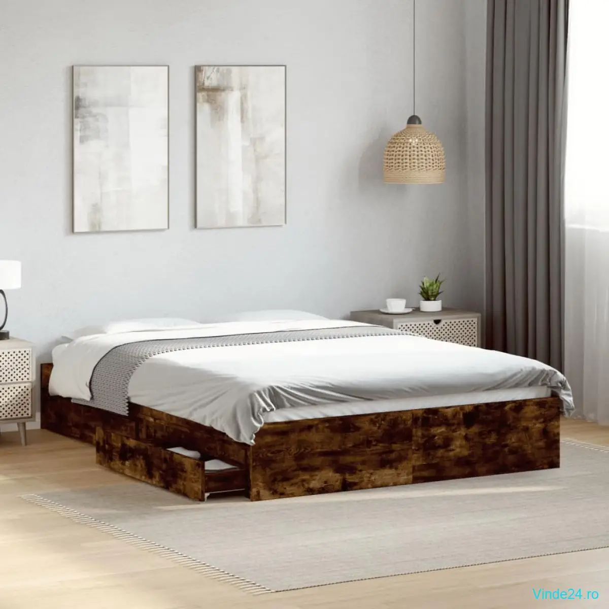 vidaXL Cadru pat cu sertare stejar fumuriu 140x190 cm lemn prelucrat