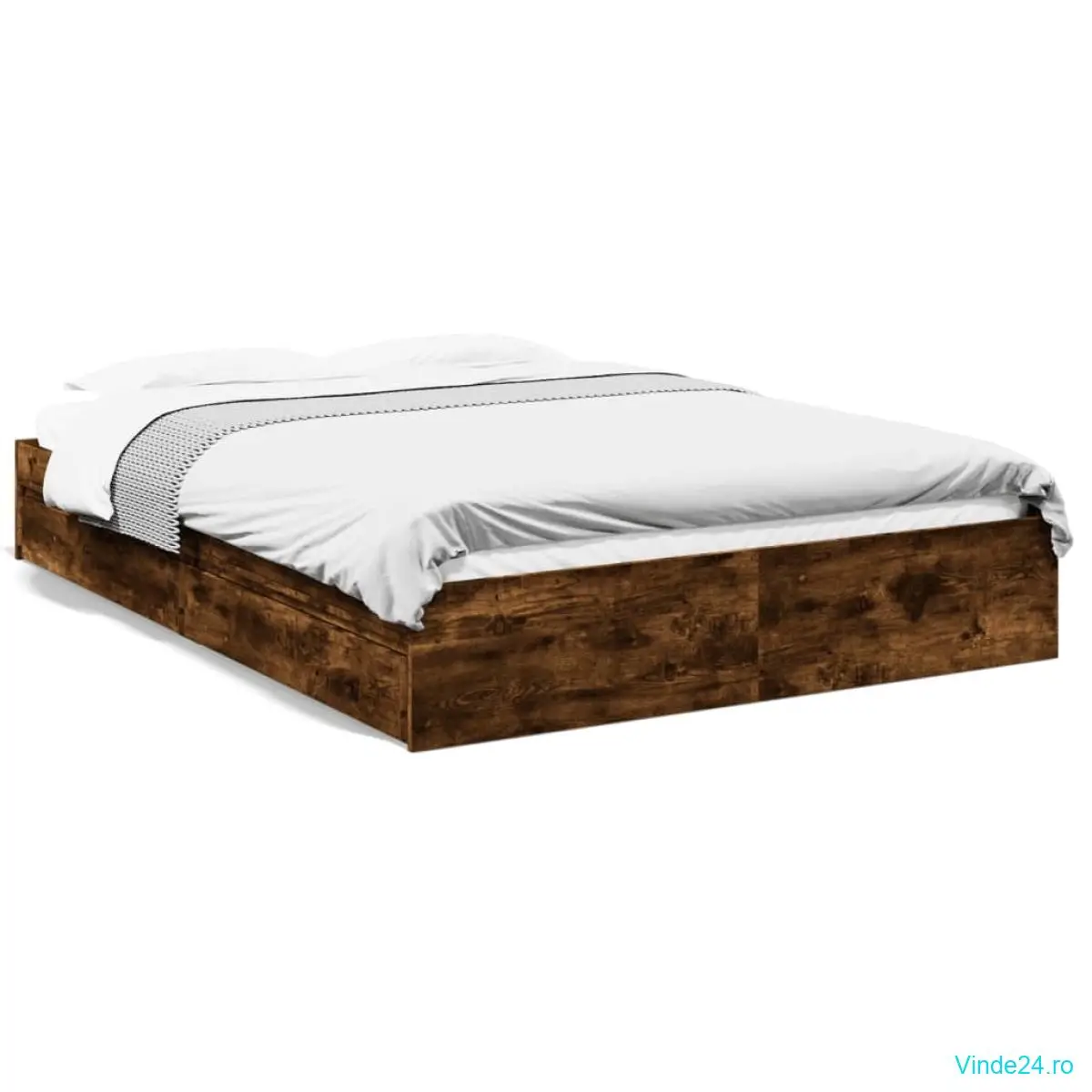 vidaXL Cadru pat cu sertare stejar fumuriu 150x200 cm lemn prelucrat