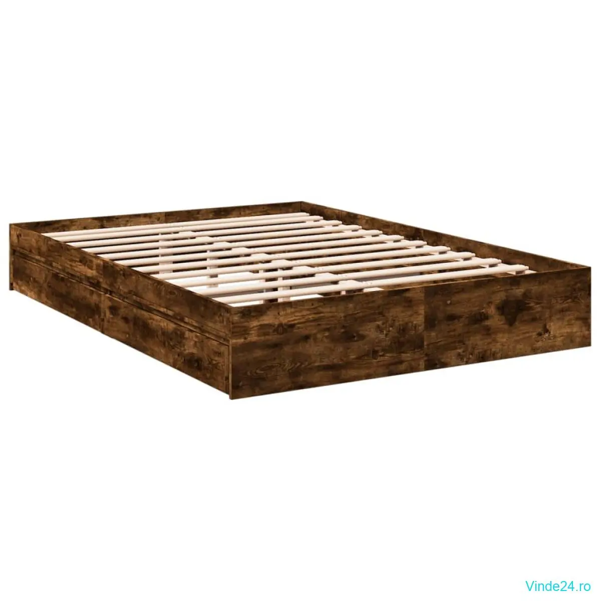 vidaXL Cadru pat cu sertare stejar fumuriu 150x200 cm lemn prelucrat