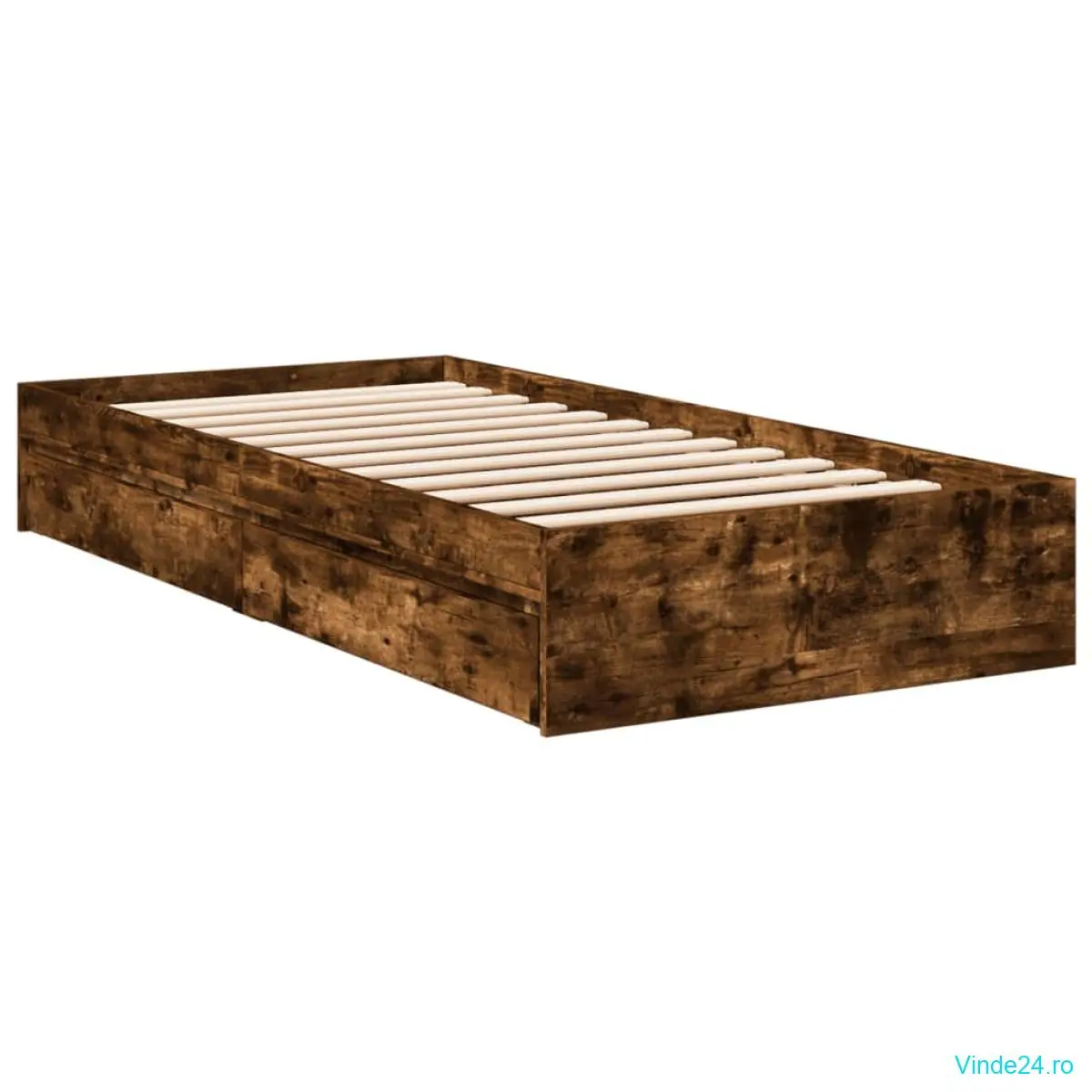 vidaXL Cadru pat cu sertare stejar fumuriu, 90x200 cm, lemn prelucrat