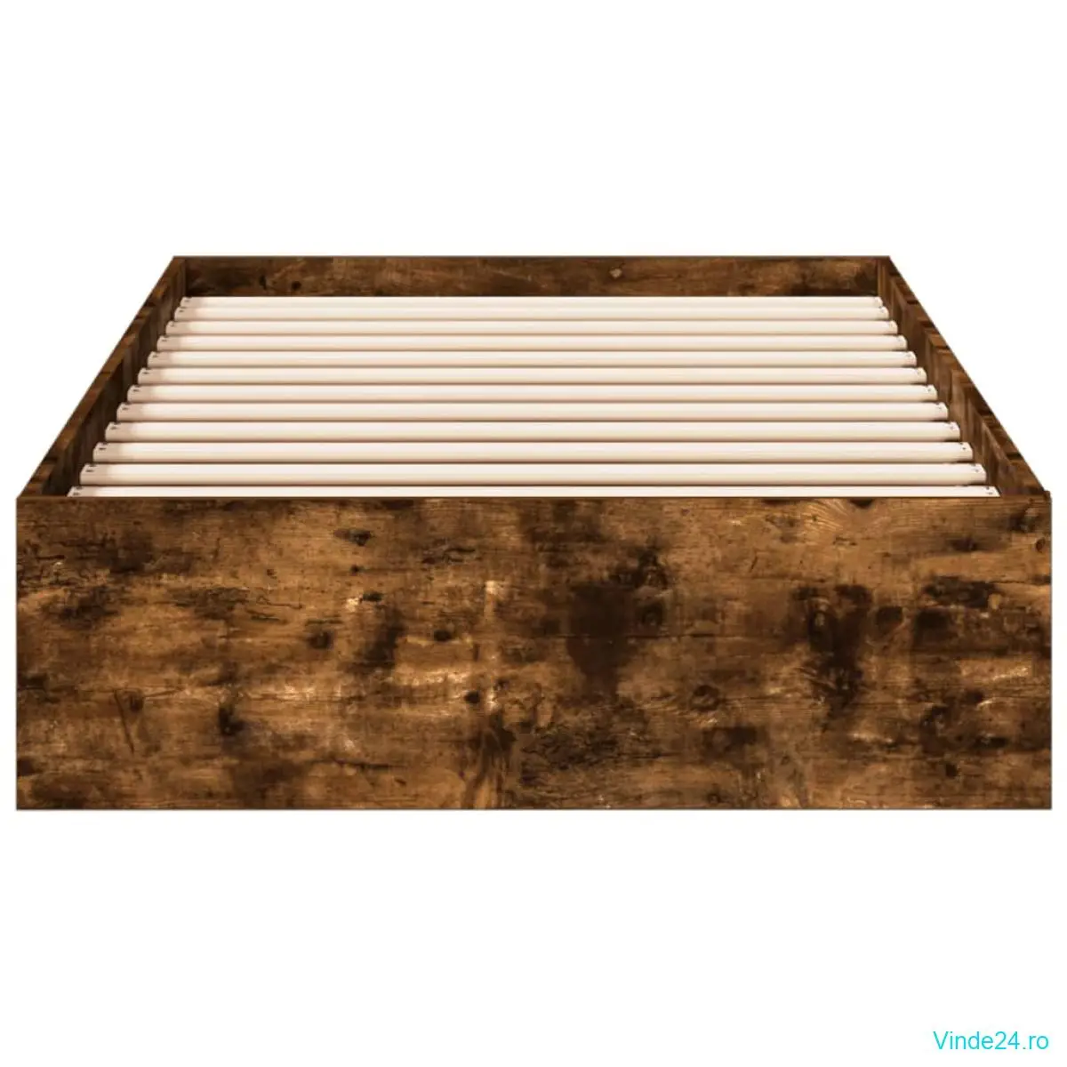 vidaXL Cadru pat cu sertare stejar fumuriu, 90x200 cm, lemn prelucrat