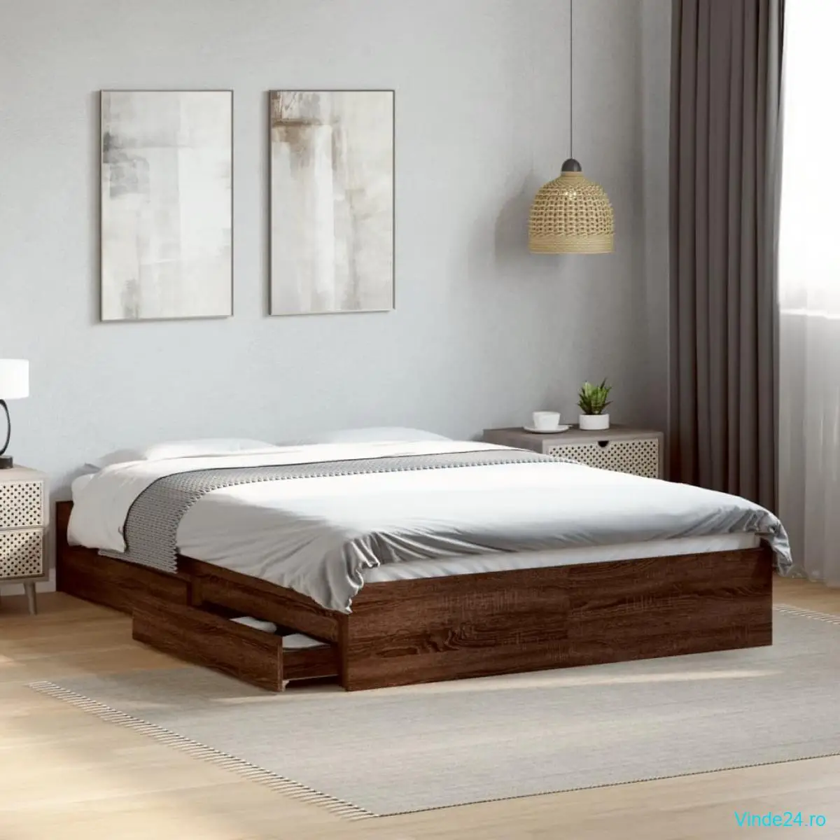 vidaXL Cadru pat cu sertare stejar maro 120x190 cm lemn prelucrat
