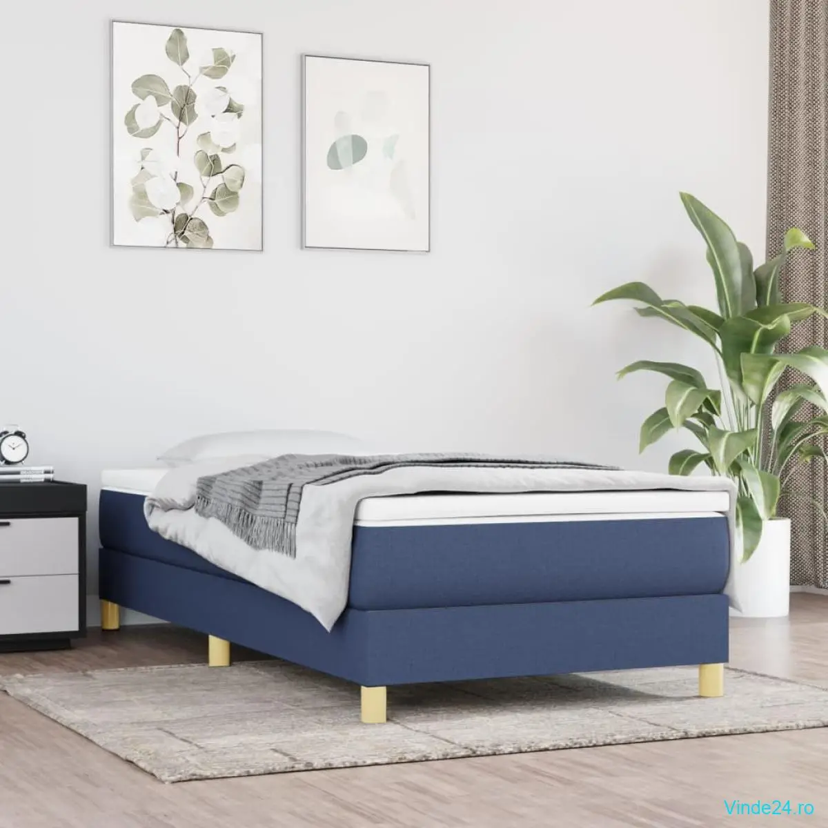 vidaXL Cadru pat fără saltea țesătură albastră 90x200 cm