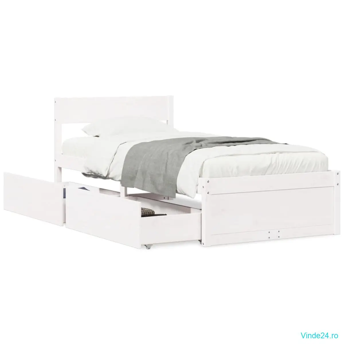 vidaXL Cadru pat fără saltea, alb, 90x190 cm, lemn masiv de pin