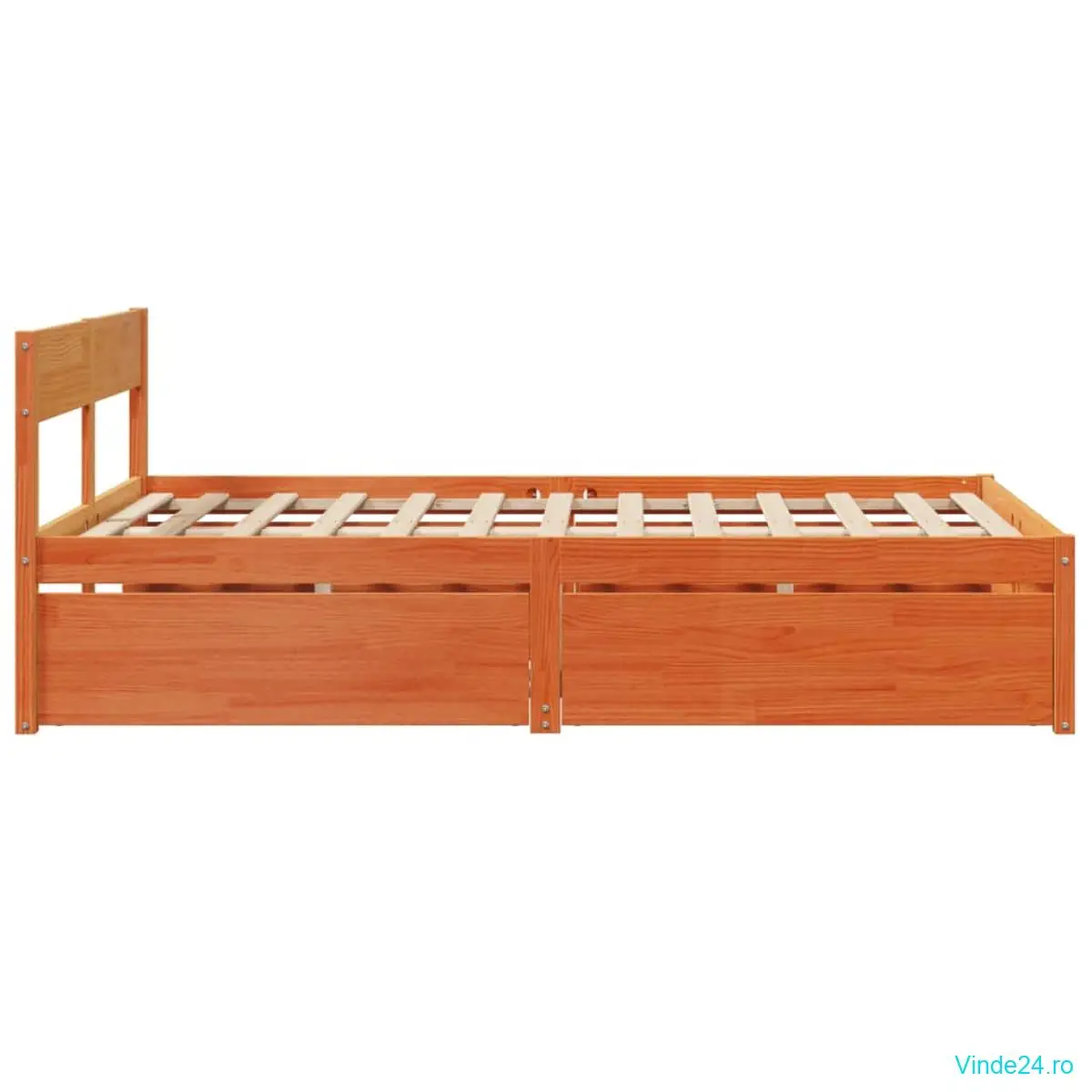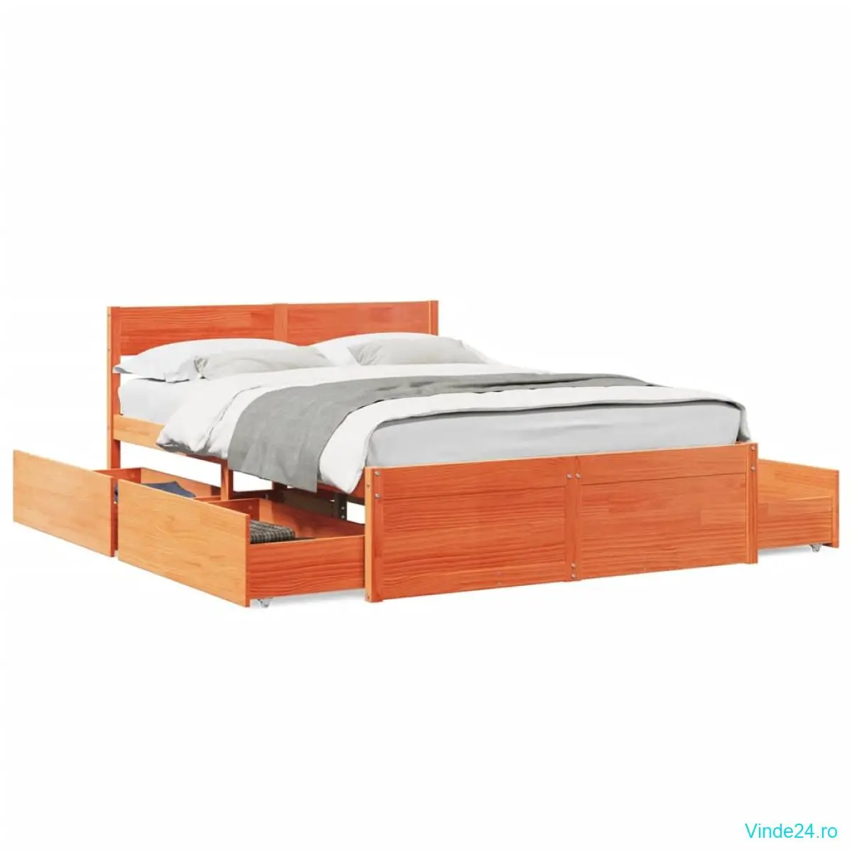 vidaXL Pat cu sertare saltea, maro ceruit, 140x200 cm, lemn masiv pin