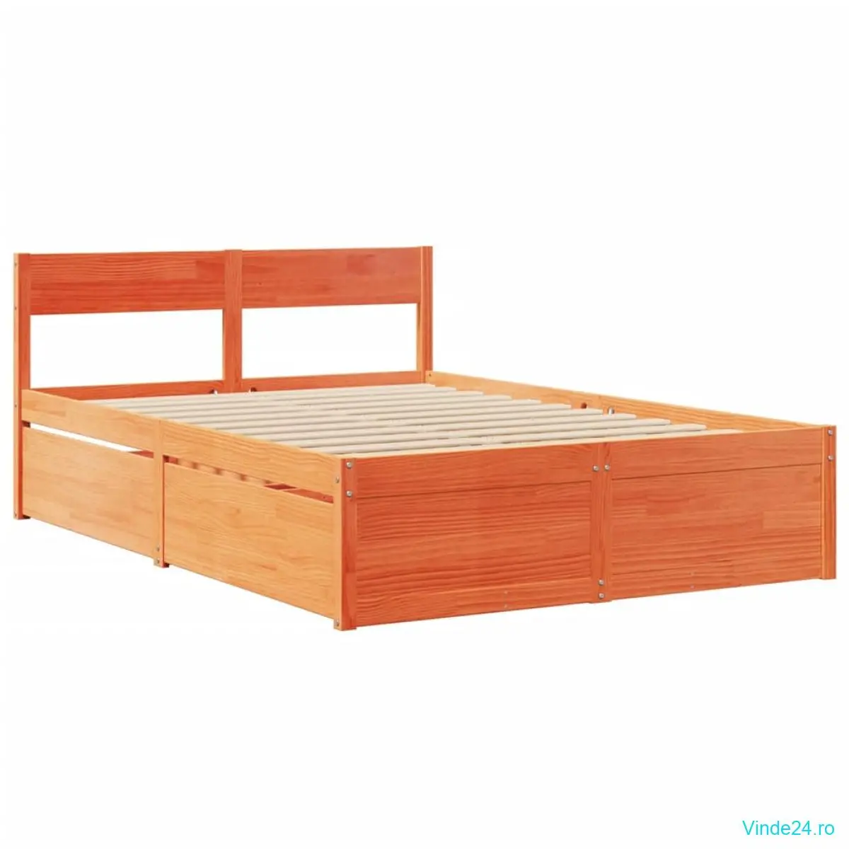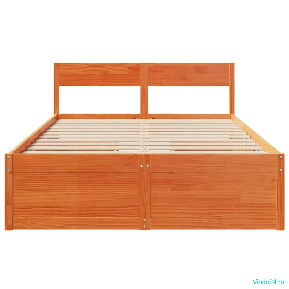 vidaXL Cadru pat fără saltea, maro ceruit, 140x190 cm, lemn masiv pin