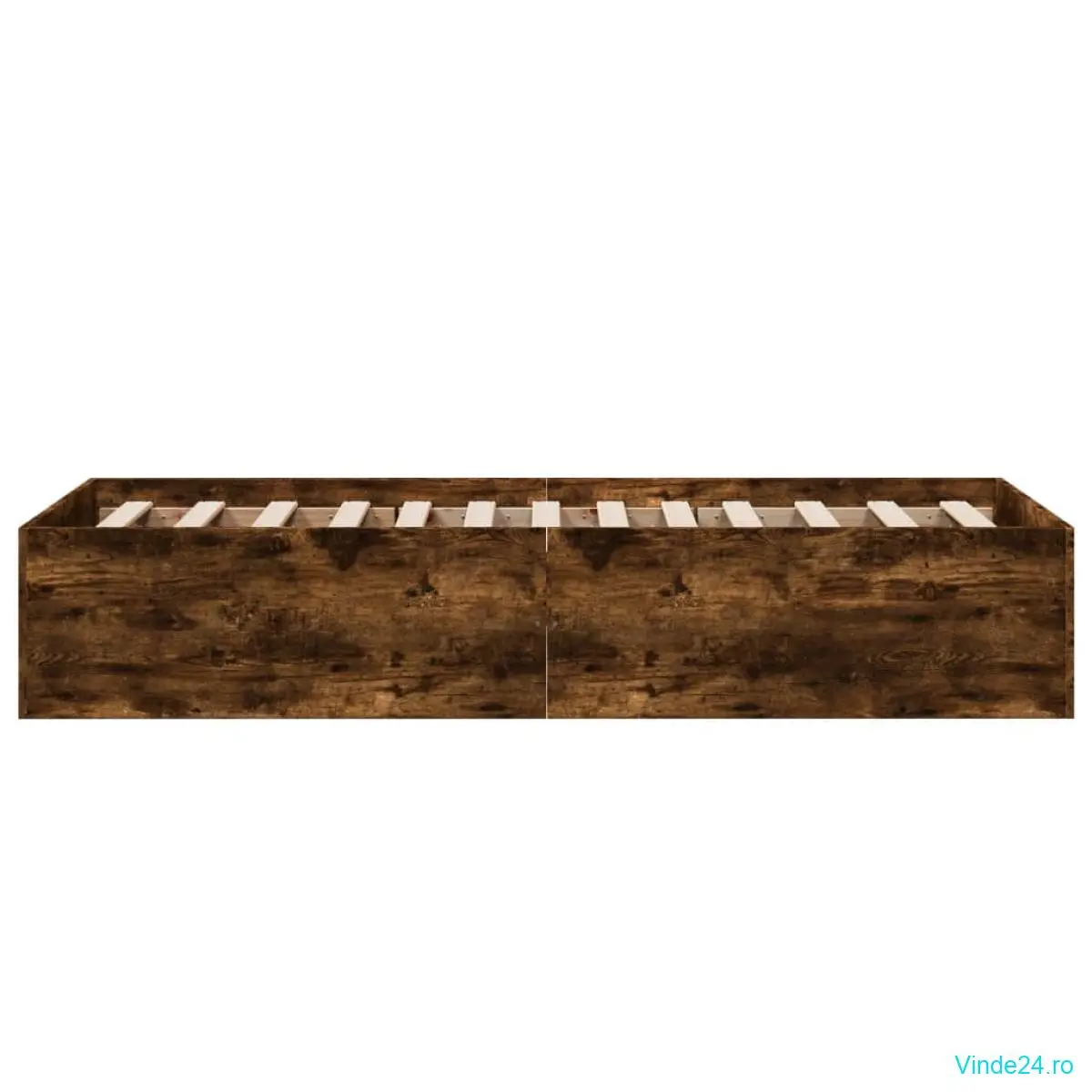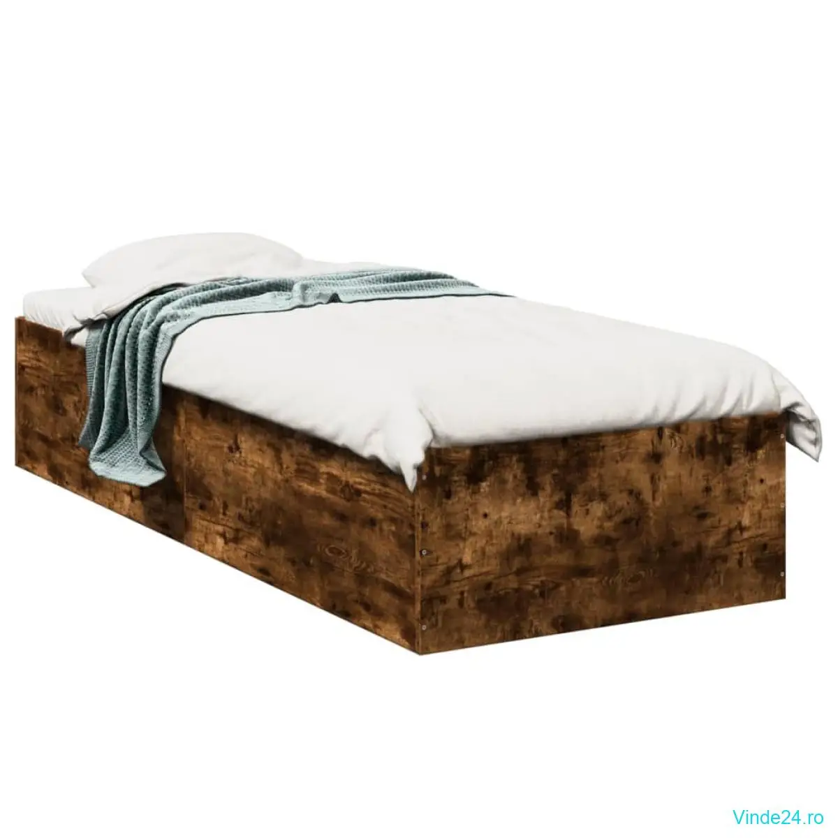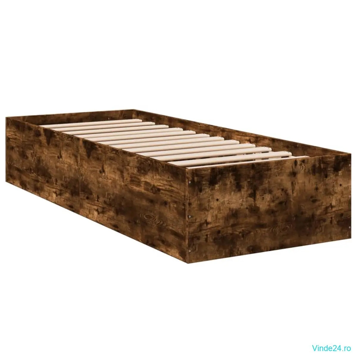 vidaXL Cadru pat fără saltea, stejar fumuriu 75x190 cm lemn prelucrat