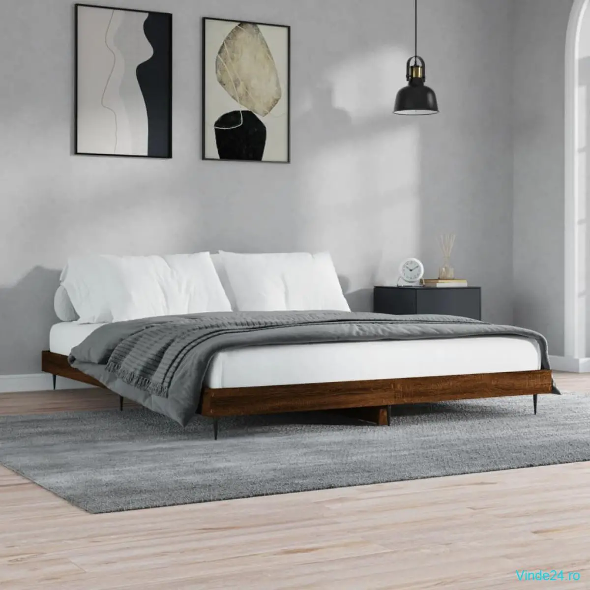 vidaXL Cadru pat fără saltea stejar maro 120x200 cm, lemn prelucrat