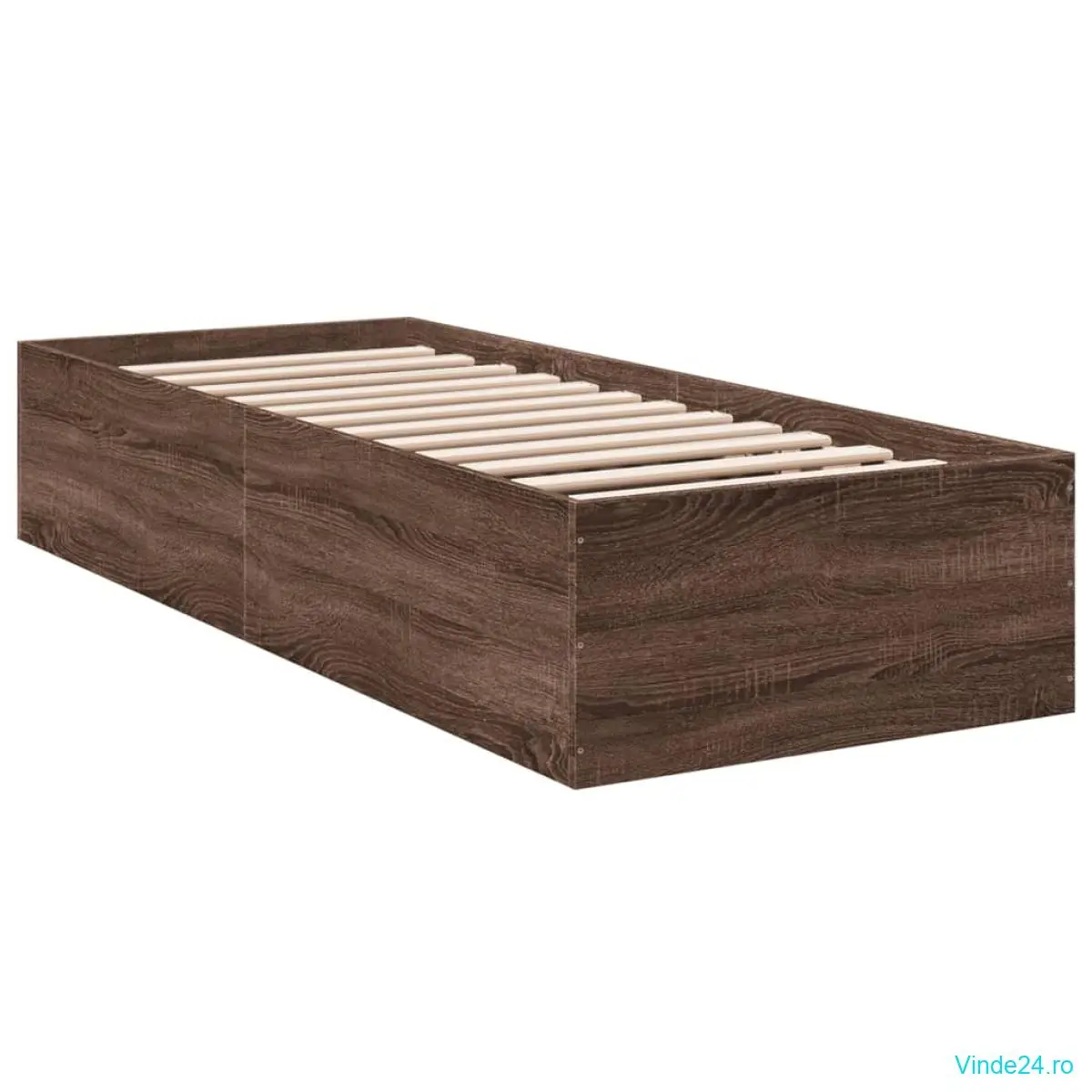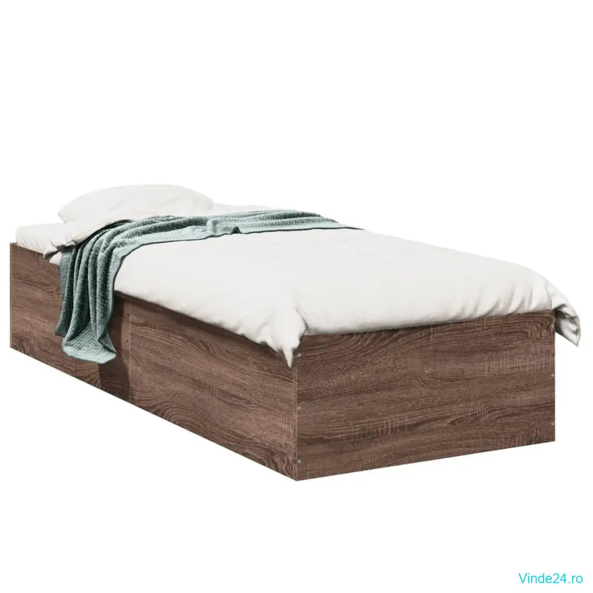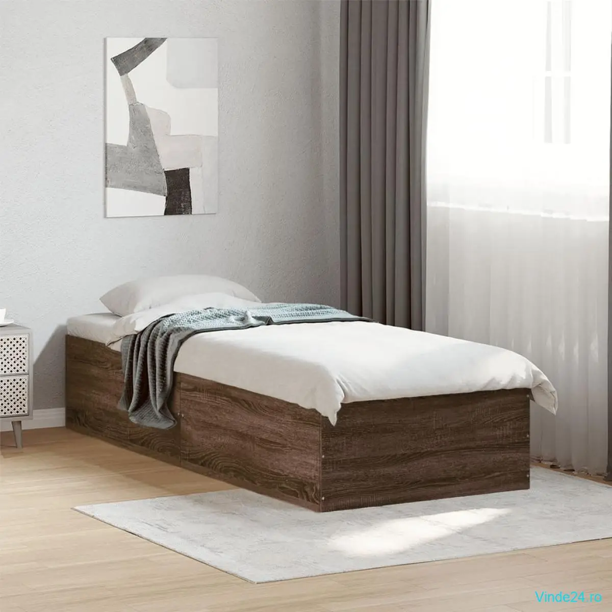 vidaXL Cadru pat fără saltea, stejar maro 75x190 cm lemn prelucrat