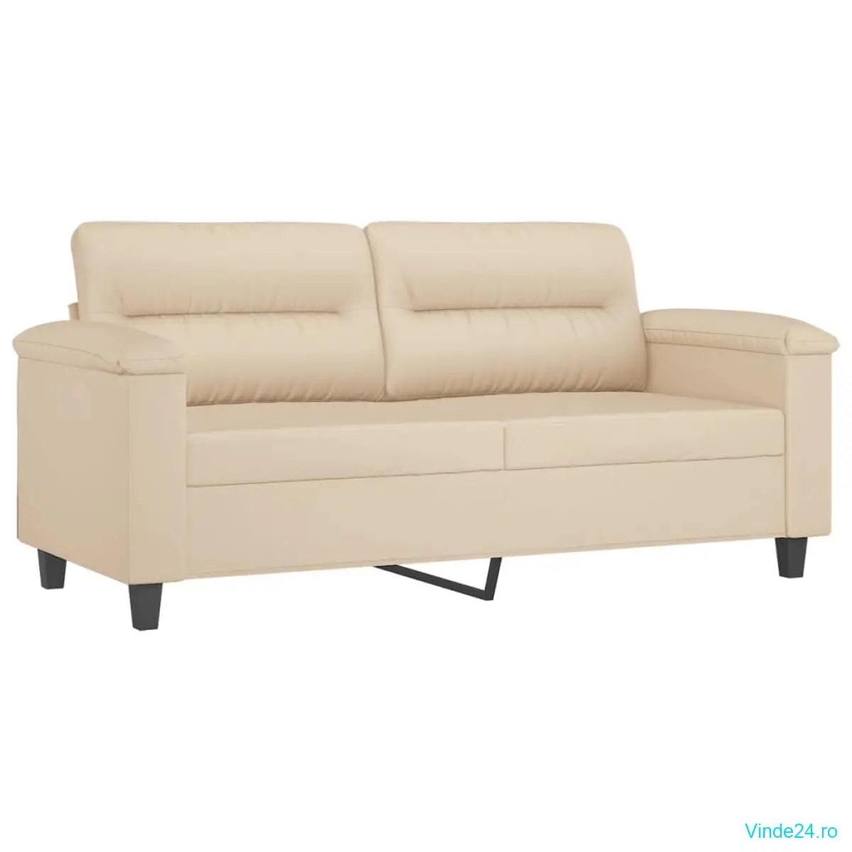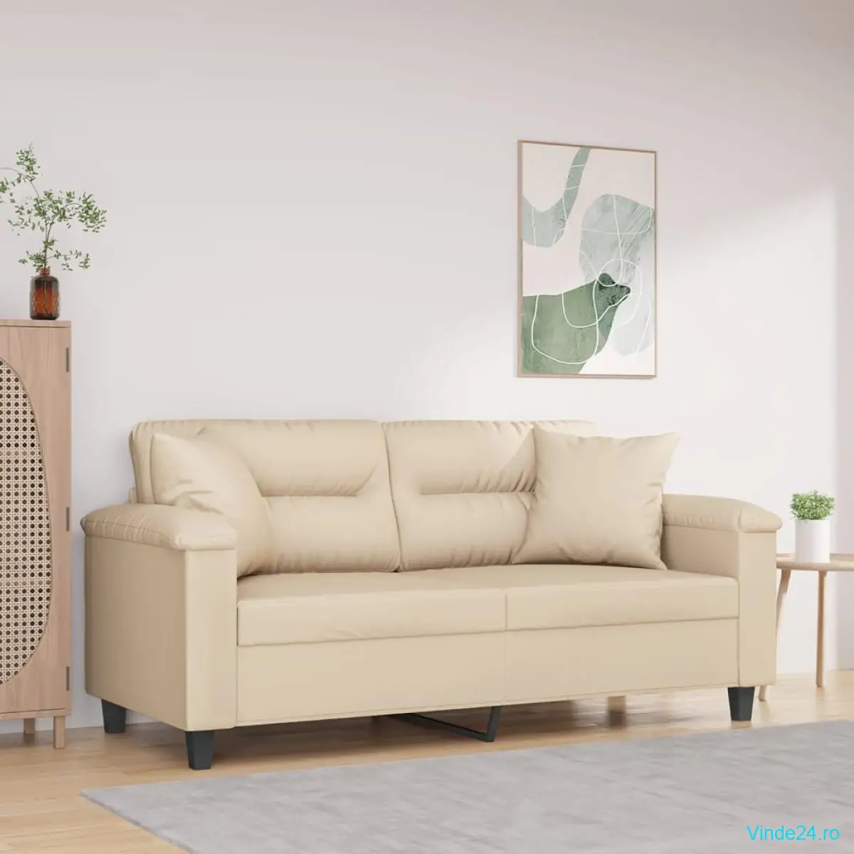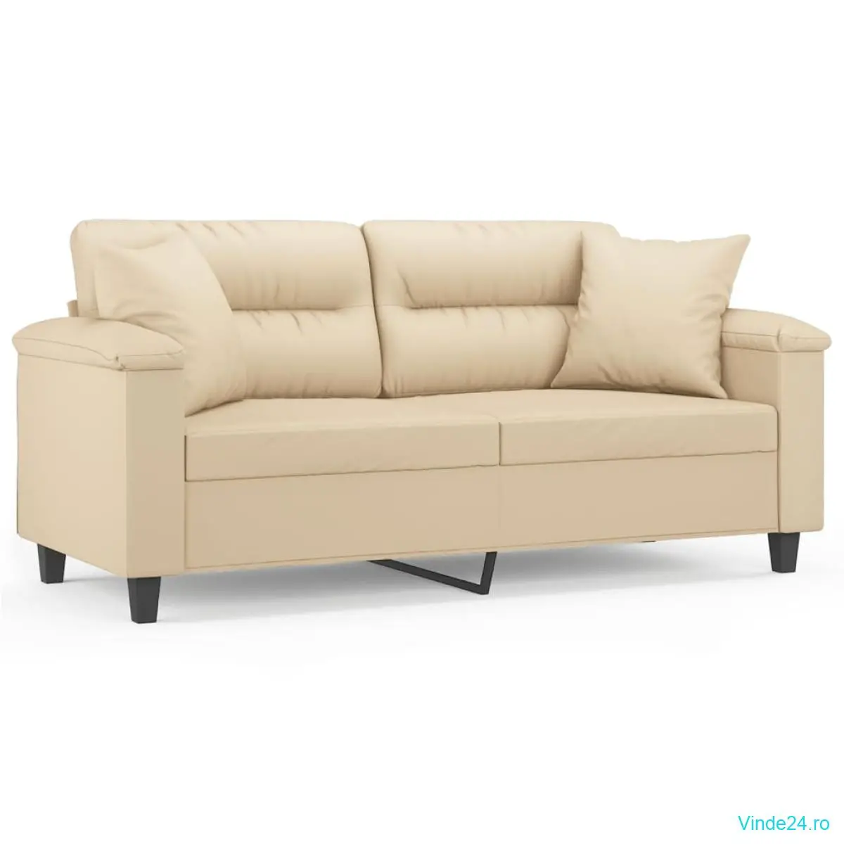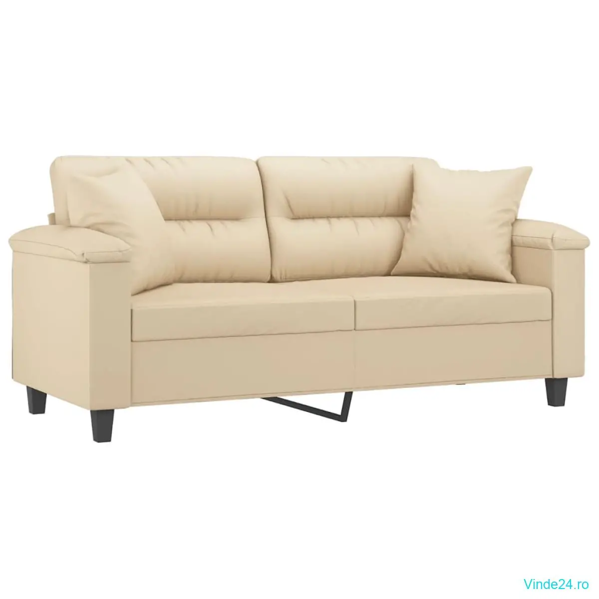 vidaXL Canapea cu 2 locuri, cu perne, crem, 140 cm, microfibră