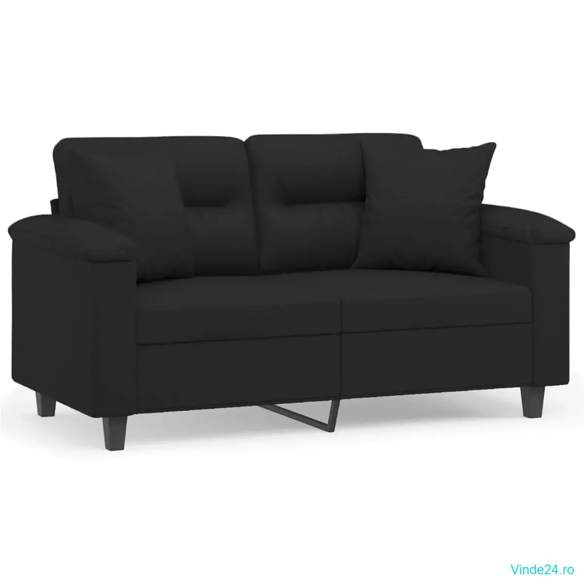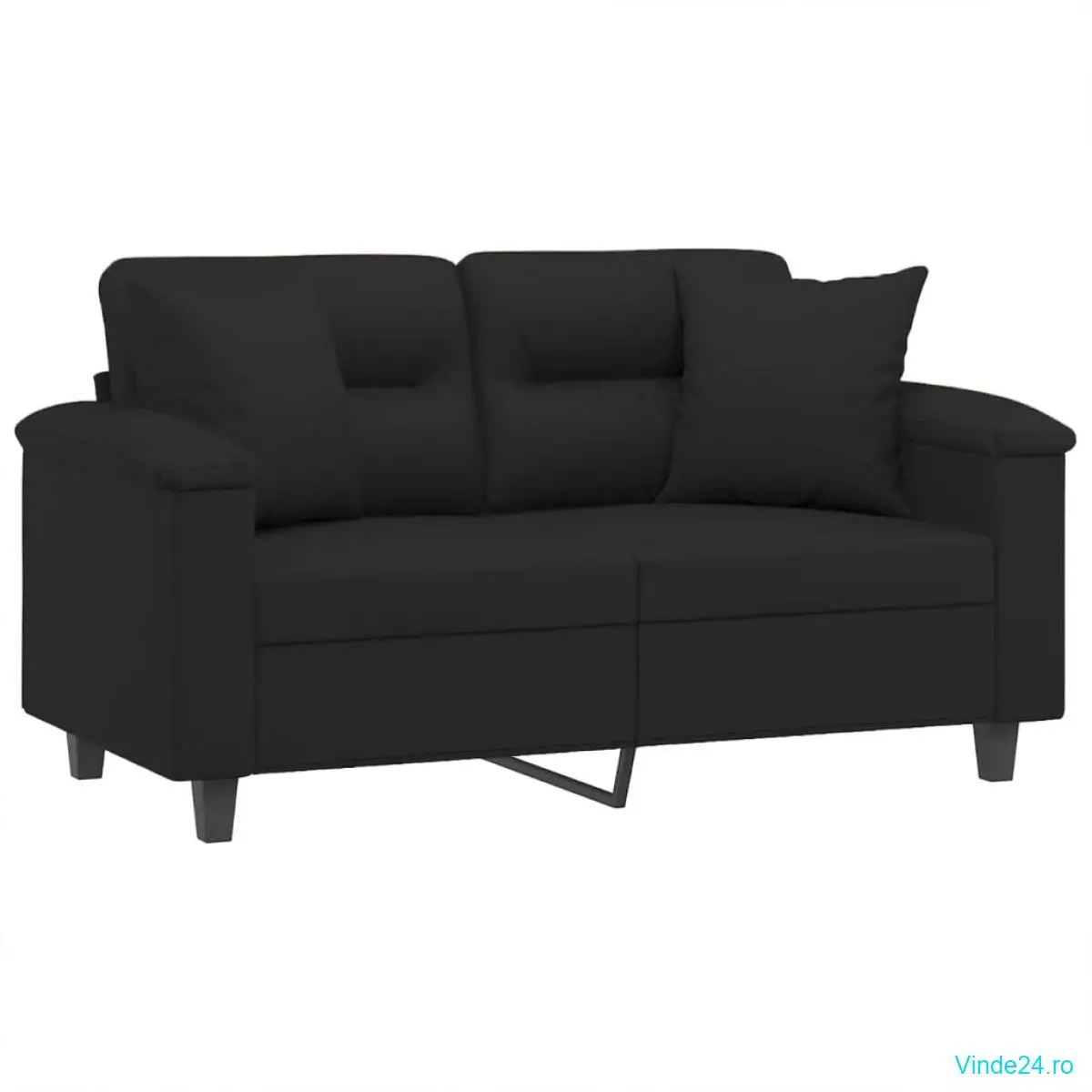 vidaXL Canapea cu 2 locuri, cu perne, negru, 120 cm, microfibră