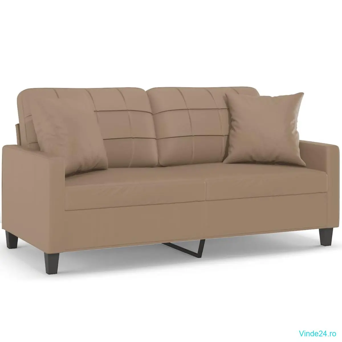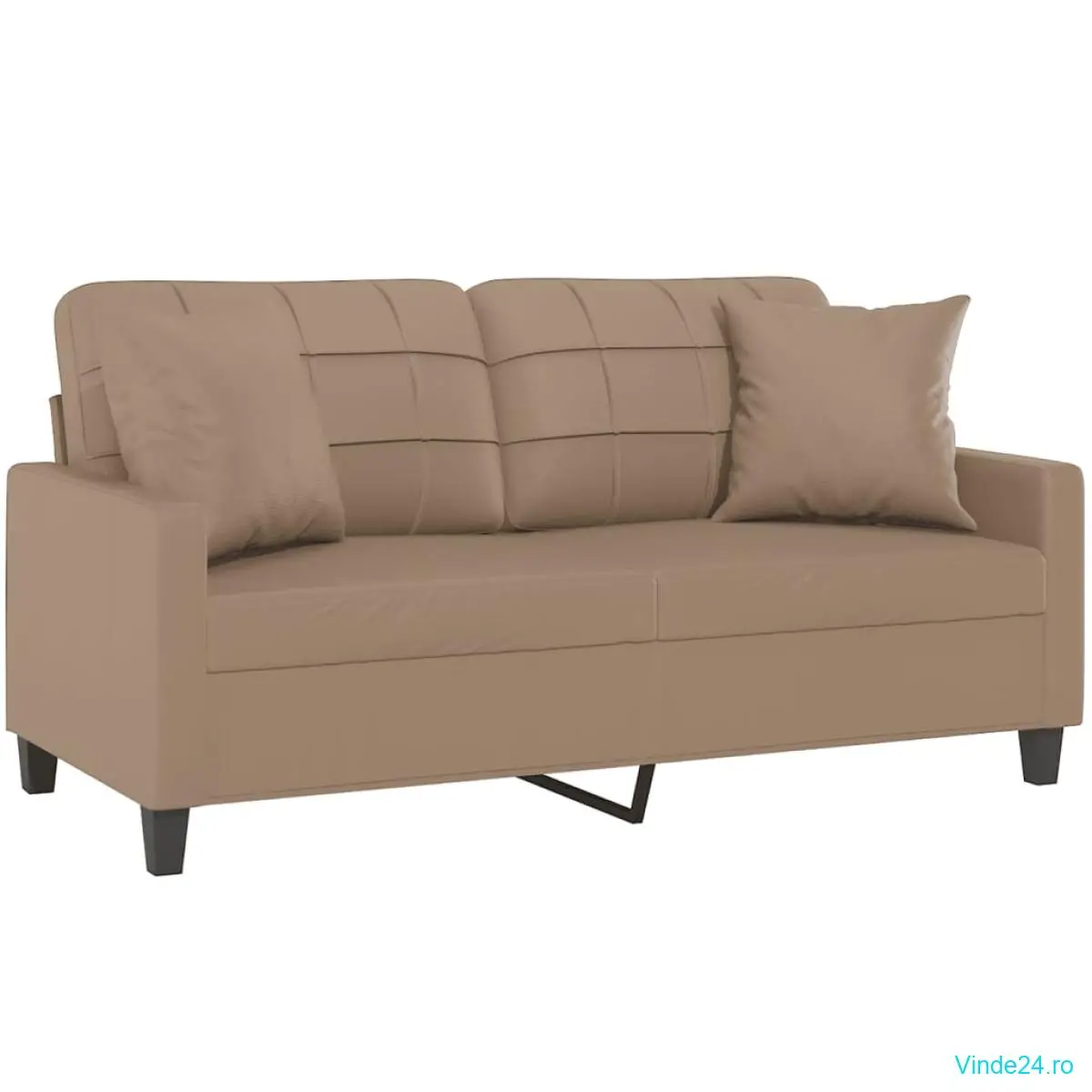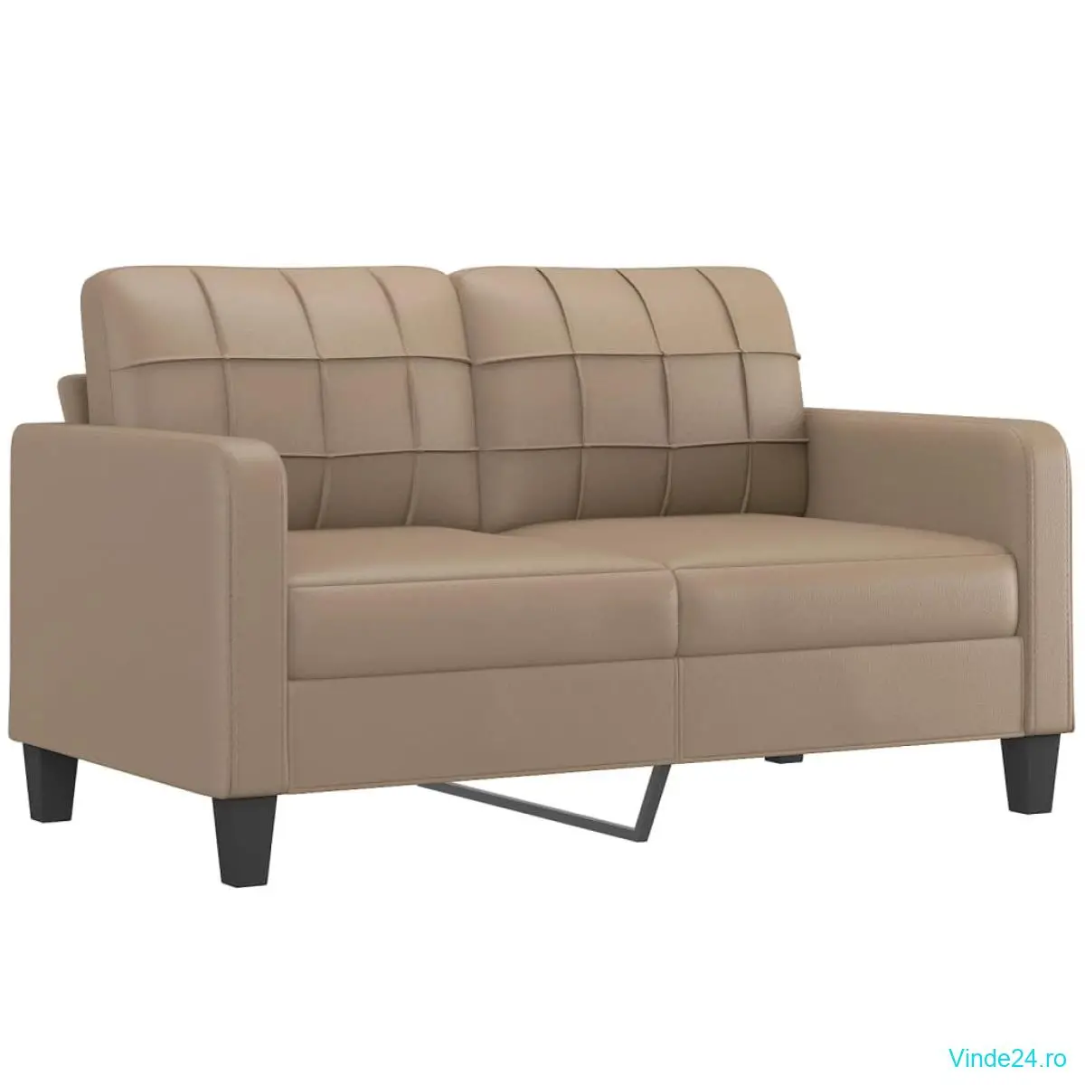 vidaXL Canapea cu 2 locuri cu pernuțe, cappuccino, 140 cm, piele eco.