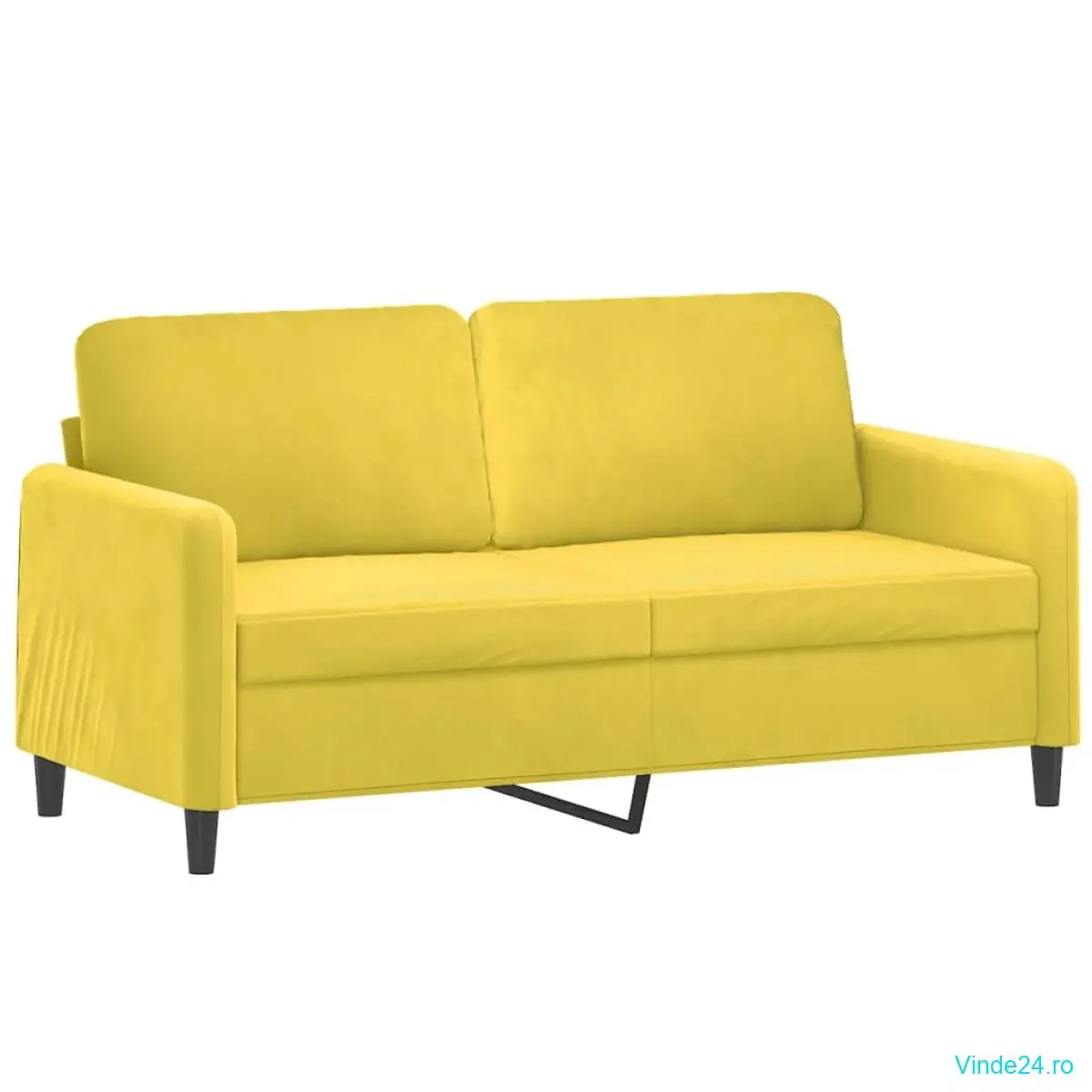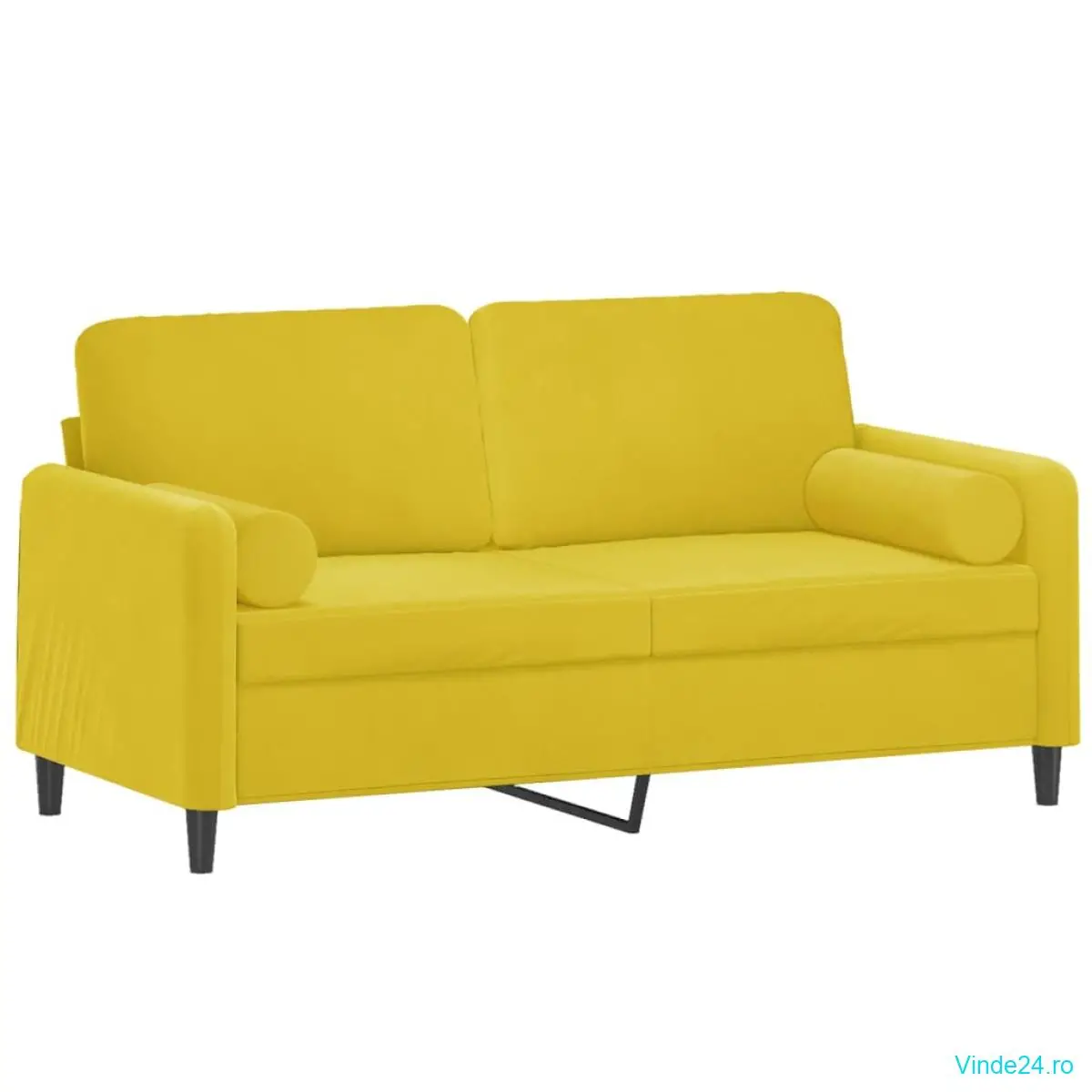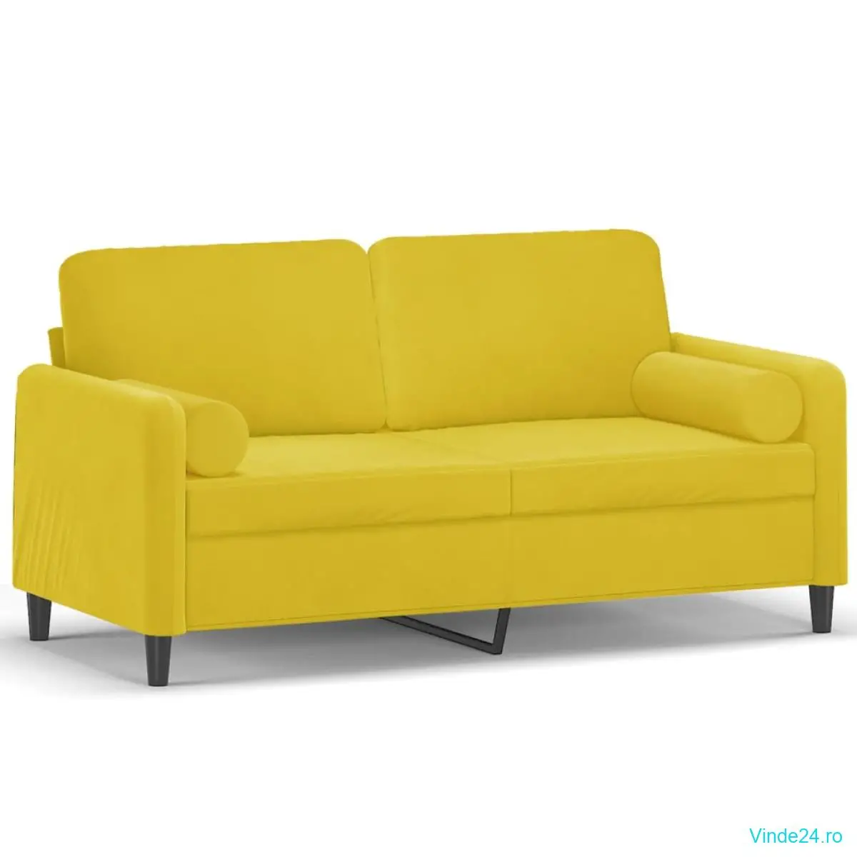 vidaXL Canapea cu 2 locuri cu pernuțe, galben, 140 cm, catifea