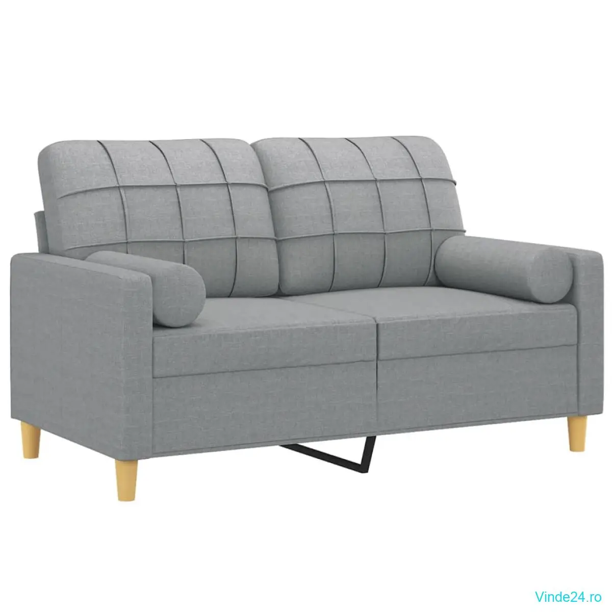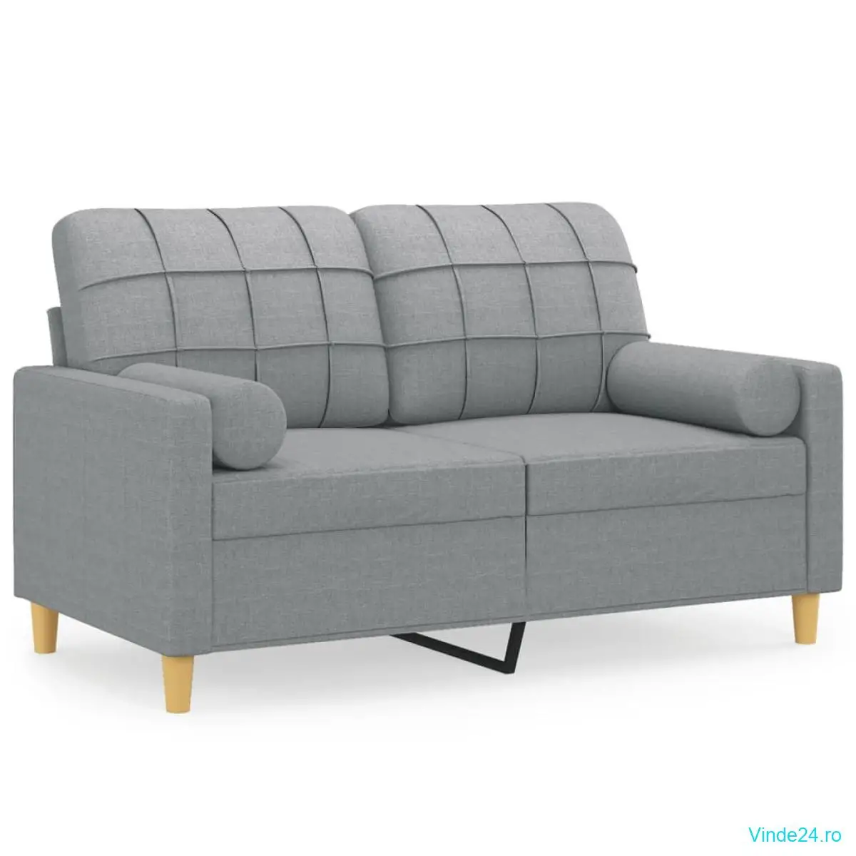 vidaXL Canapea cu 2 locuri cu pernuțe, gri deschis, 120 cm, textil