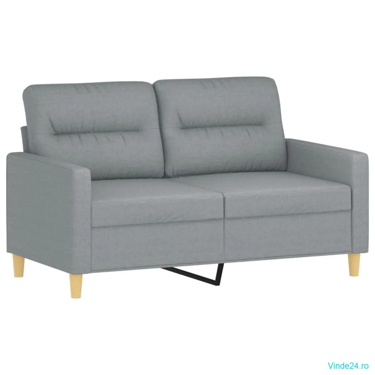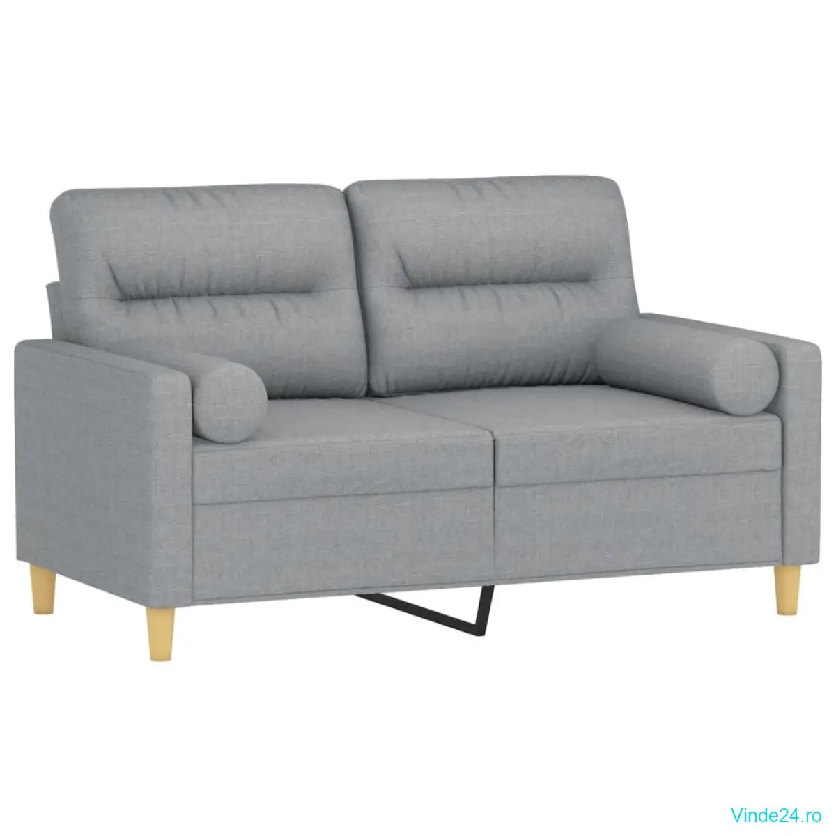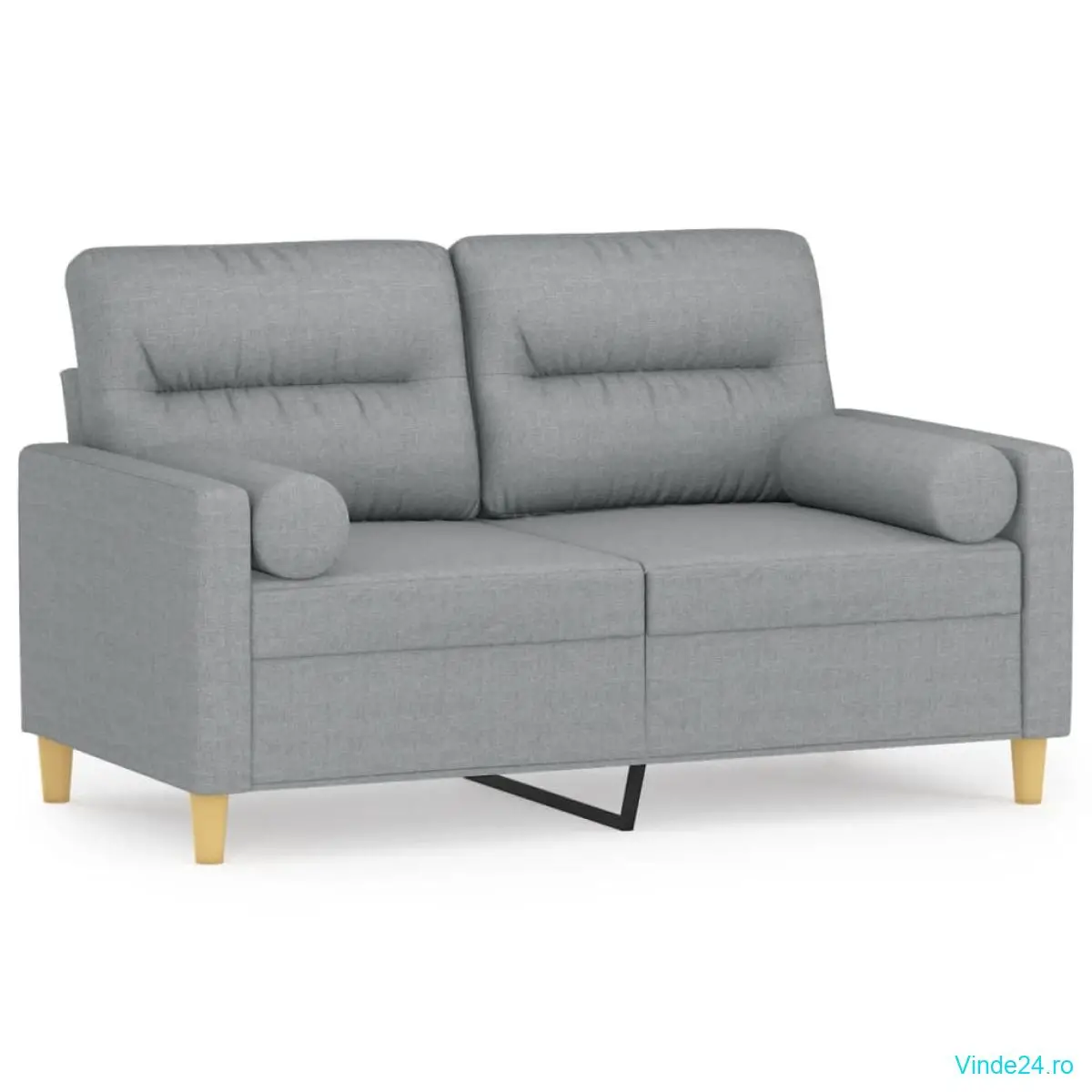 vidaXL Canapea cu 2 locuri cu pernuțe, gri deschis, 120 cm, textil