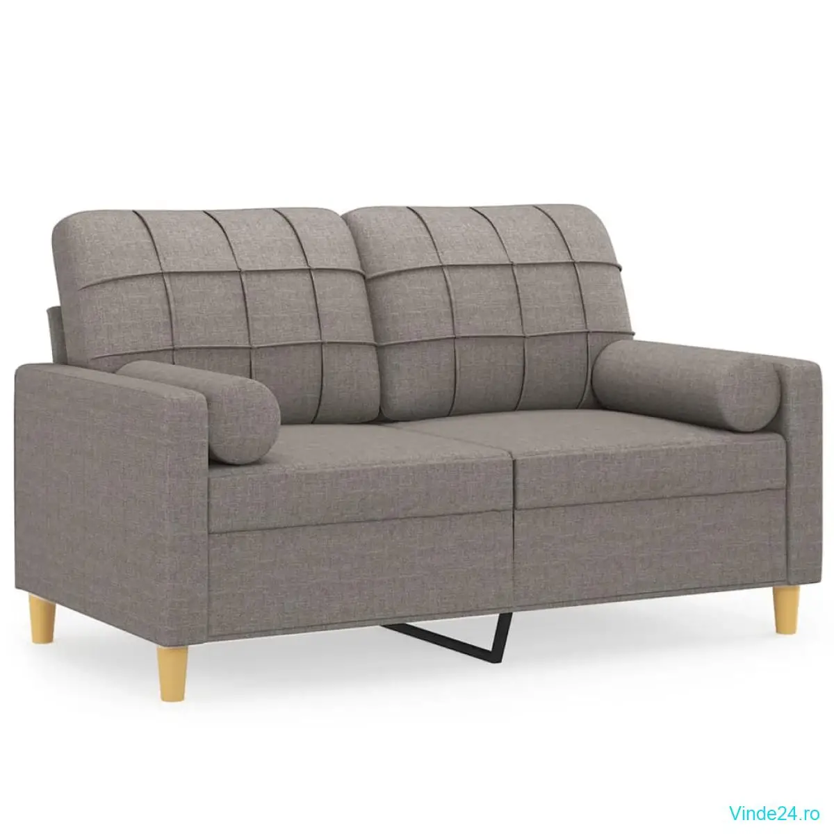 vidaXL Canapea cu 2 locuri cu pernuțe, gri taupe, 120 cm, textil