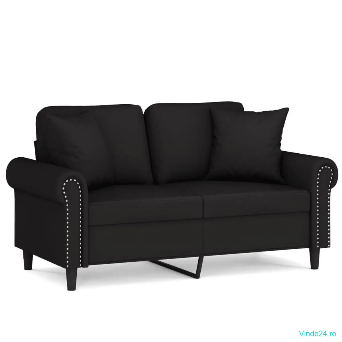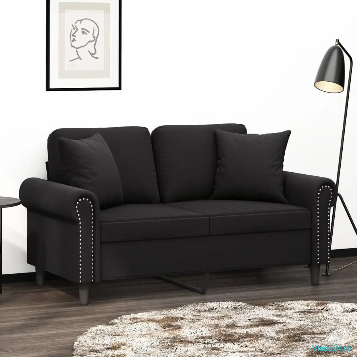 vidaXL Canapea cu 2 locuri cu pernuțe, negru, 120 cm, catifea