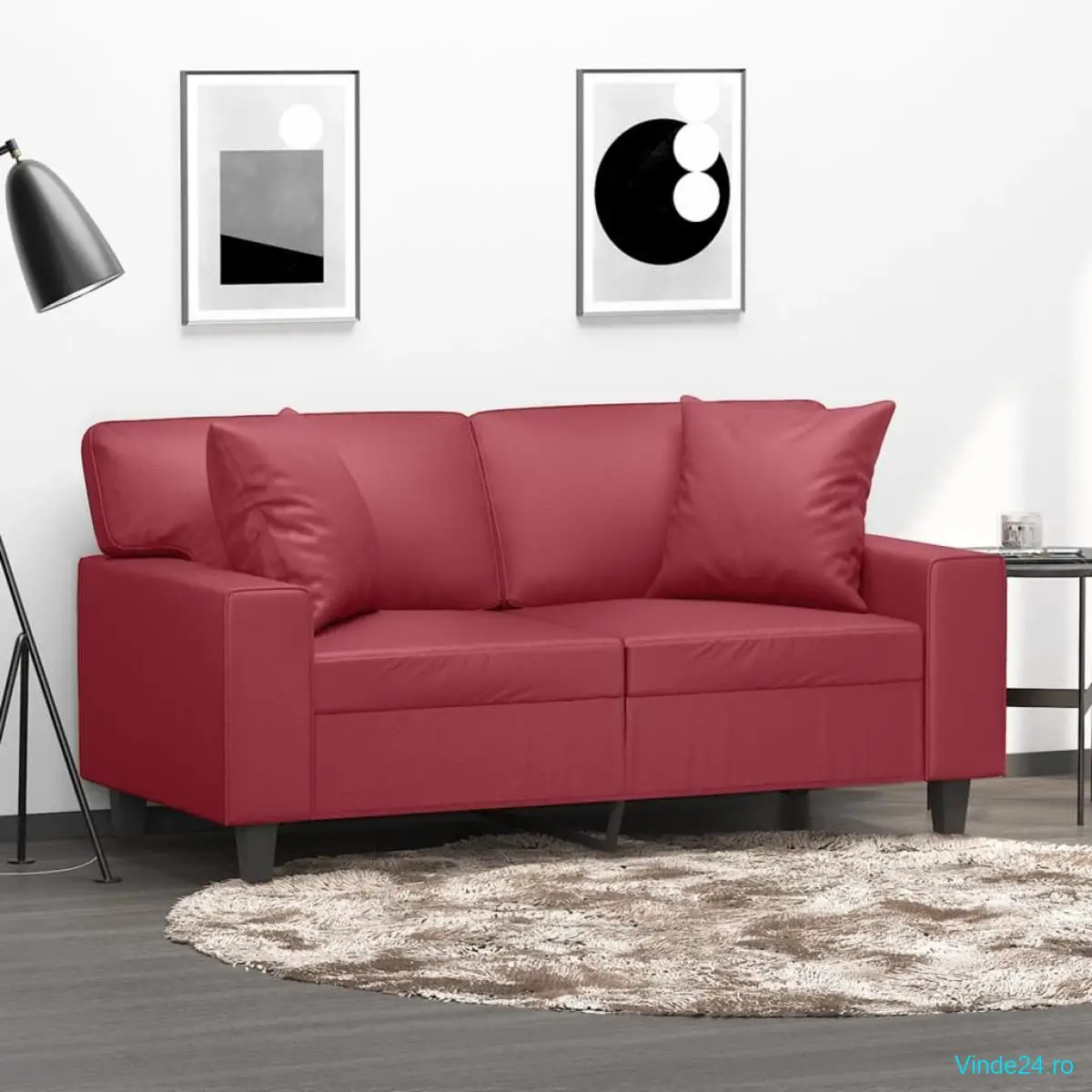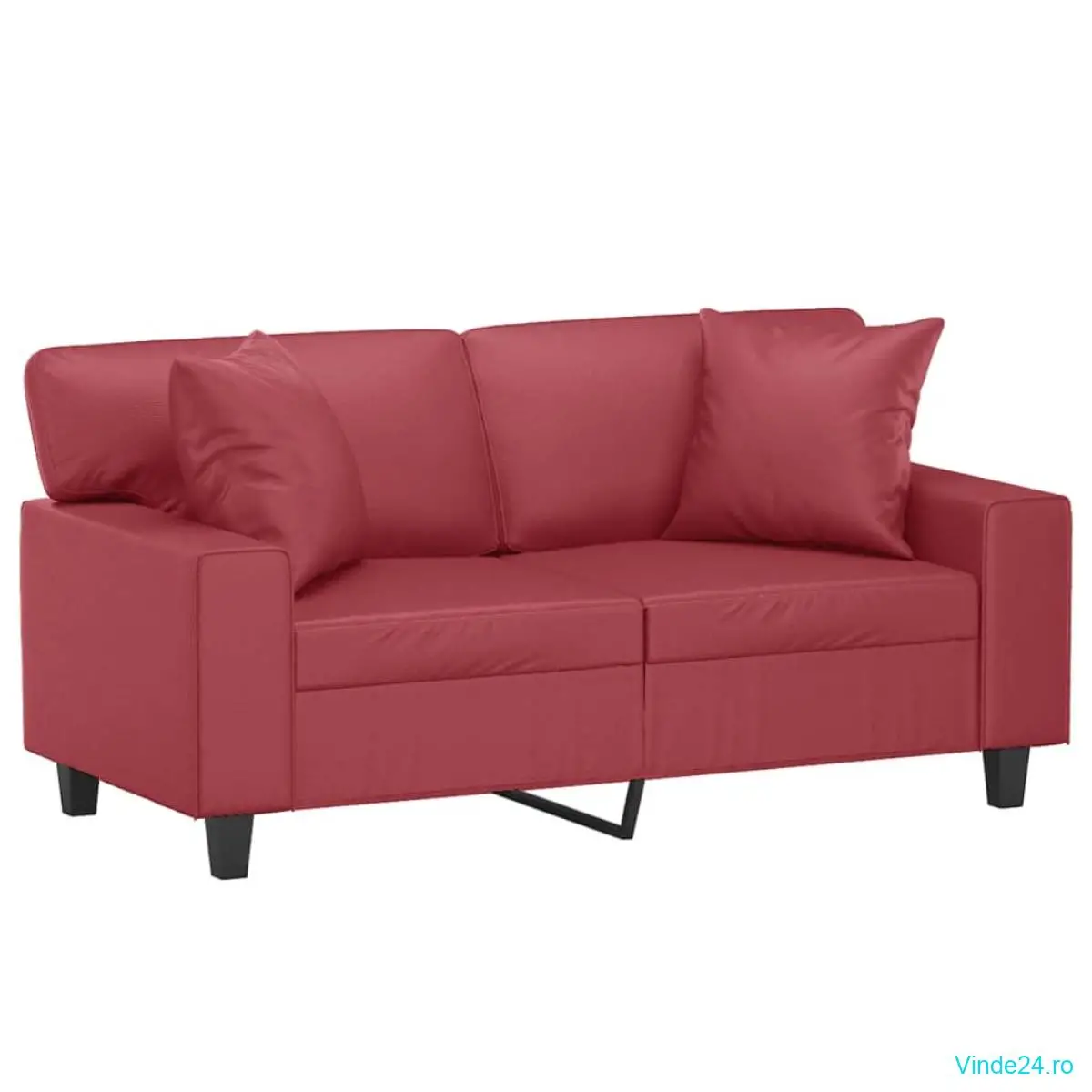 vidaXL Canapea cu 2 locuri cu pernuțe, roșu vin 120 cm piele ecologică