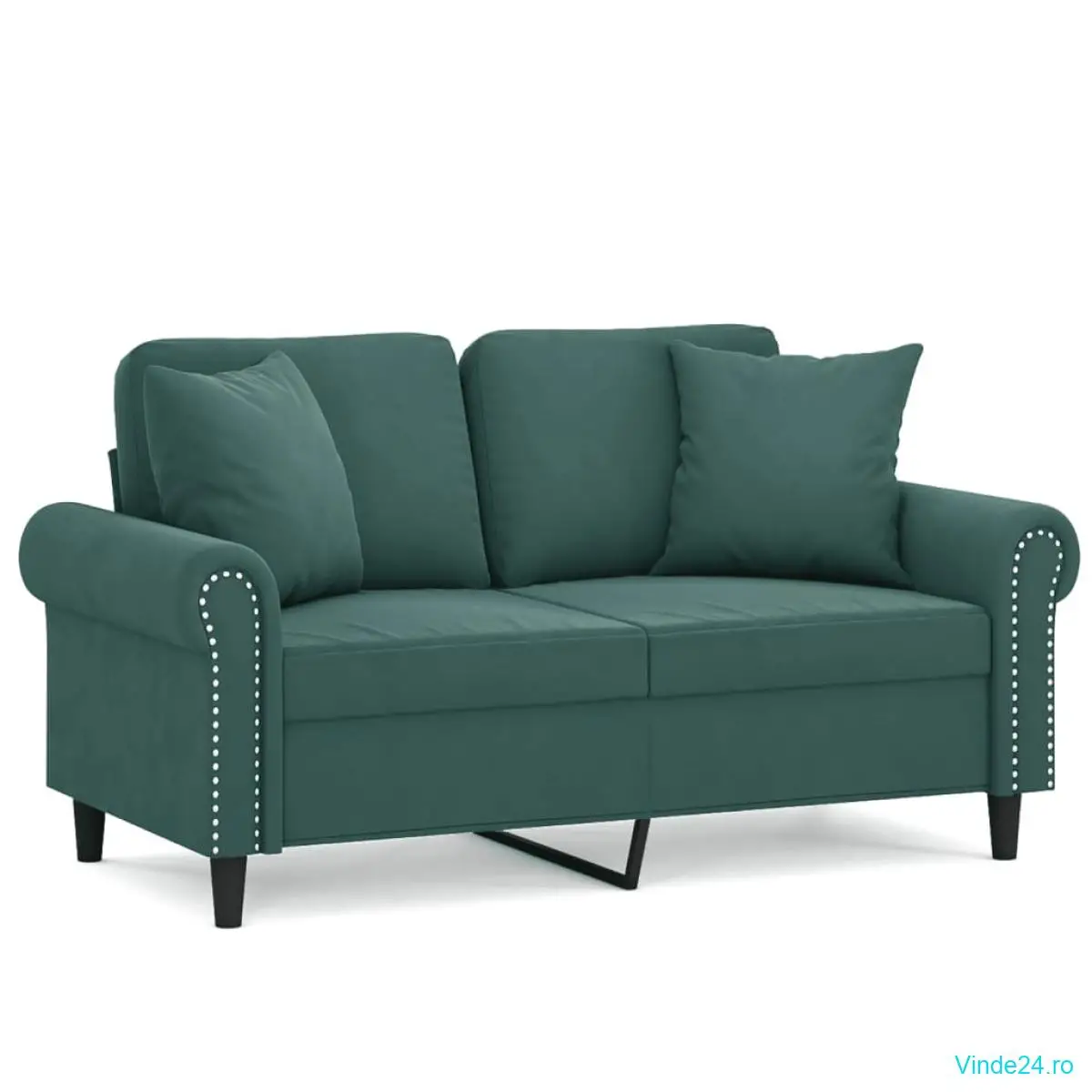 vidaXL Canapea cu 2 locuri cu pernuțe, verde închis, 120 cm, catifea