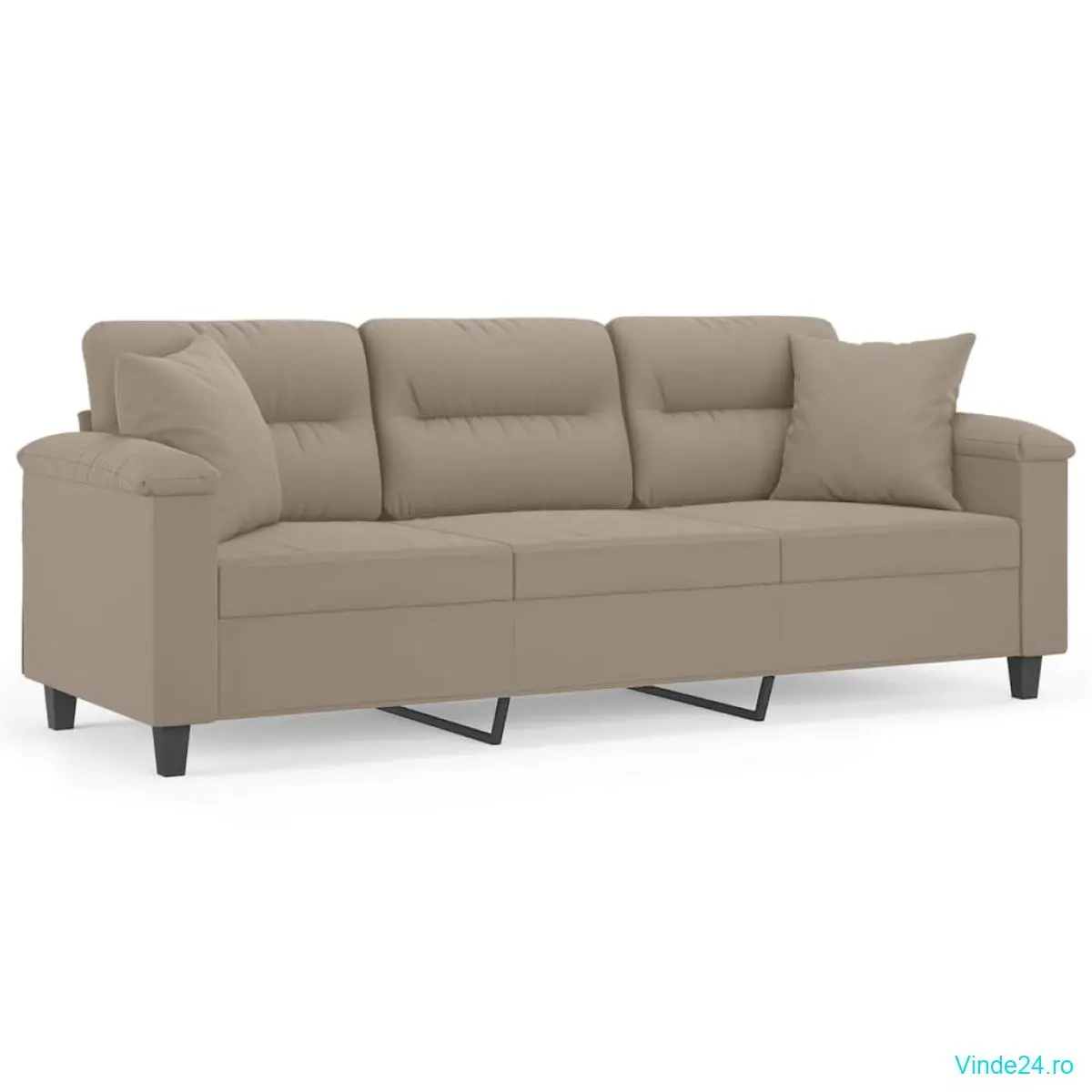 vidaXL Canapea cu 3 locuri și perne, gri taupe, 180 cm, microfibră
