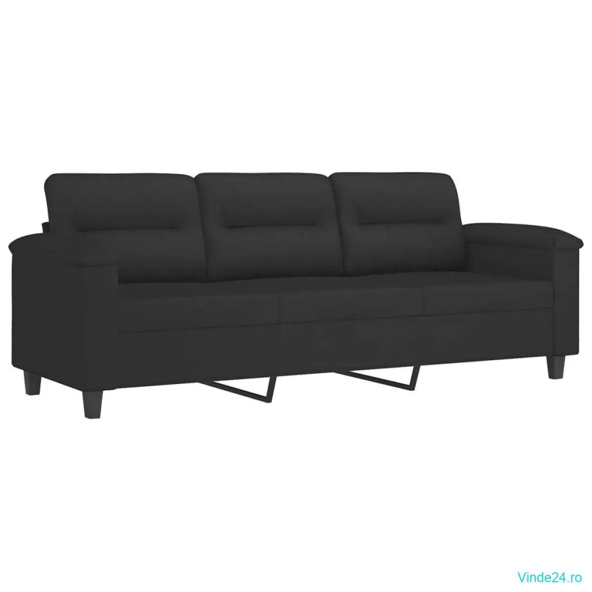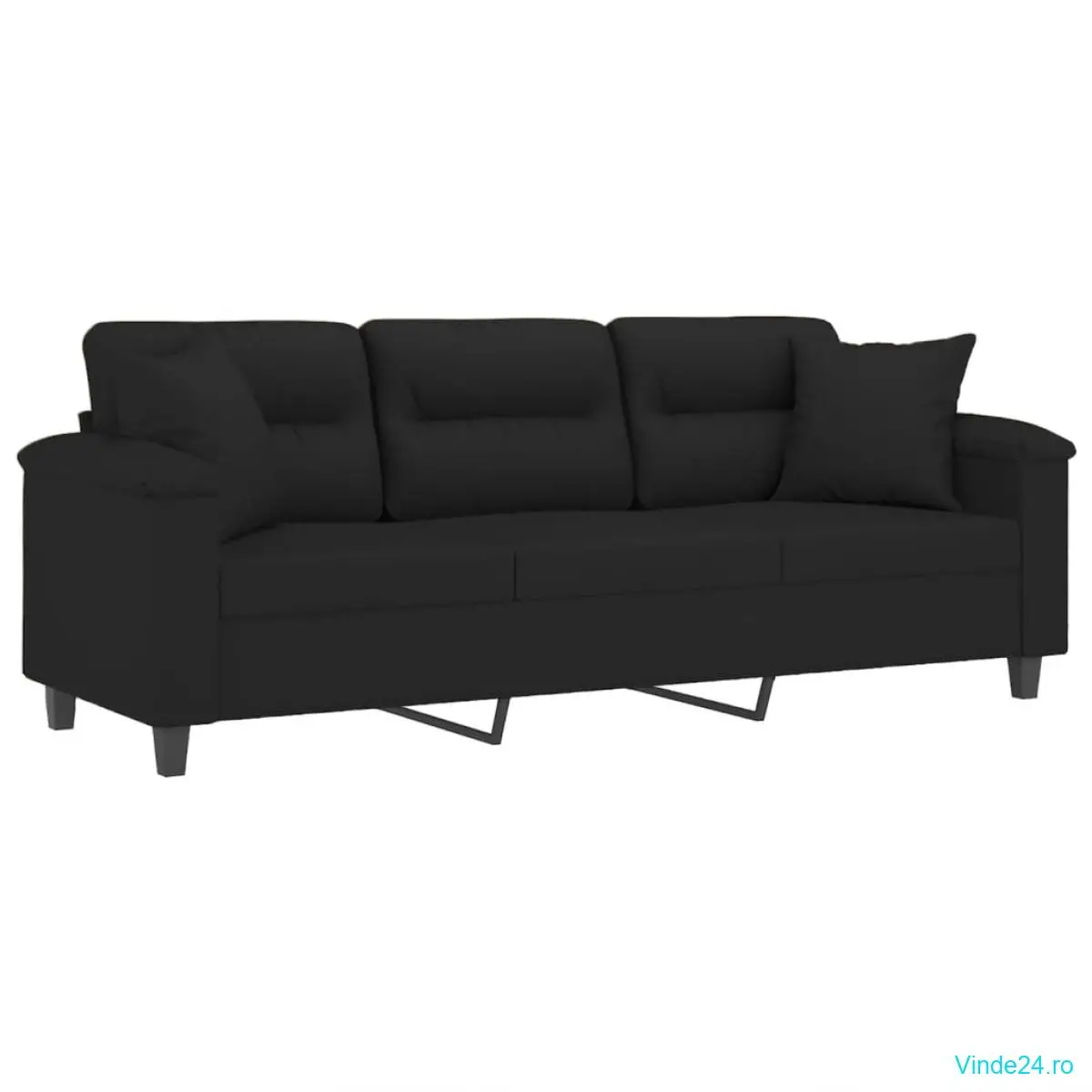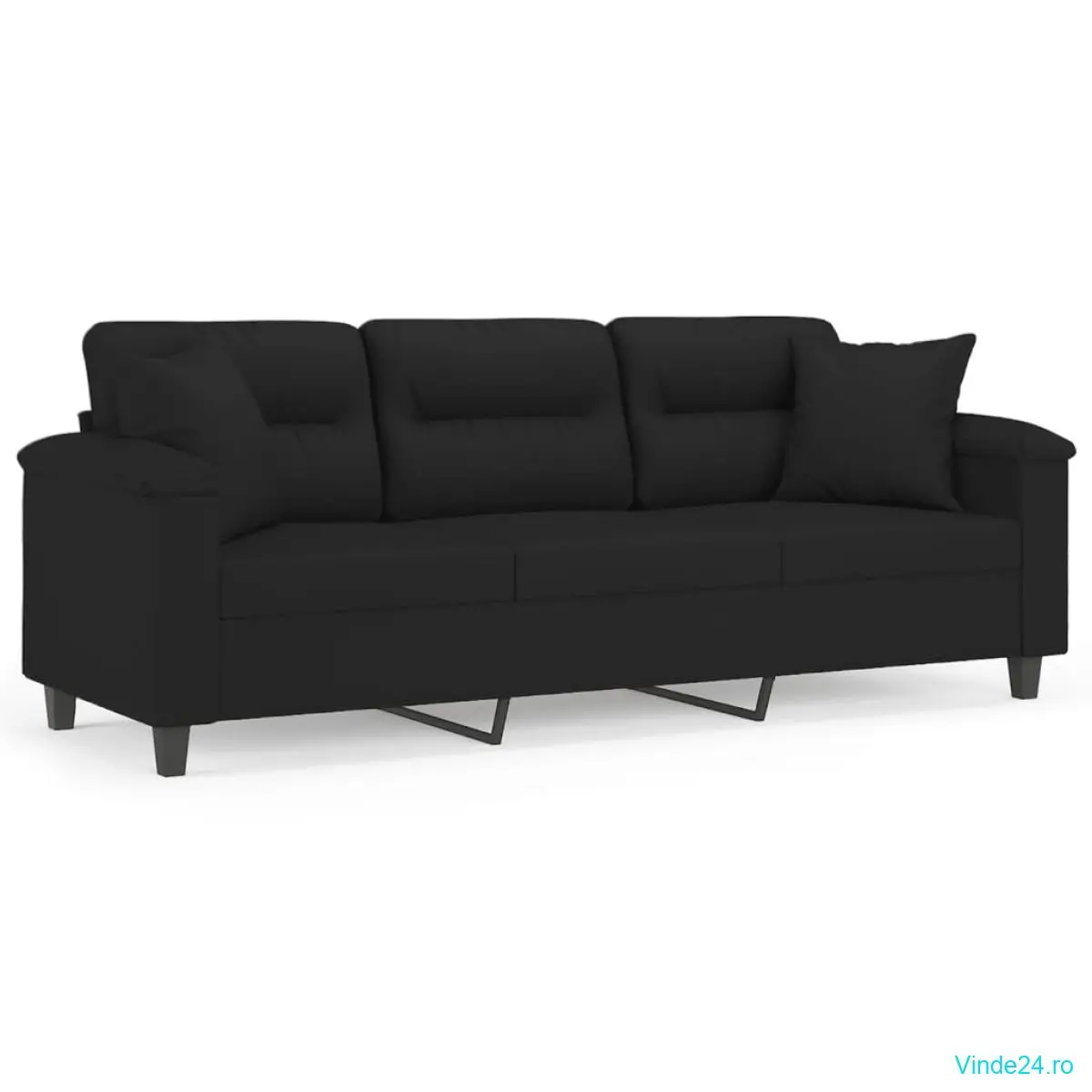 vidaXL Canapea cu 3 locuri și perne, negru, 180 cm, microfibră