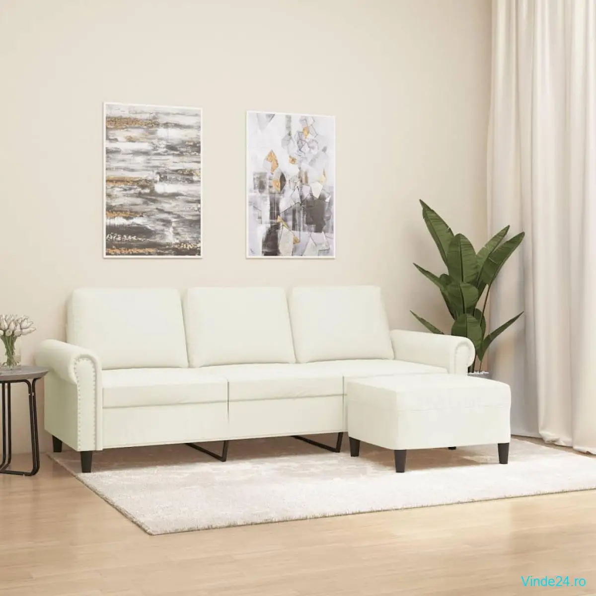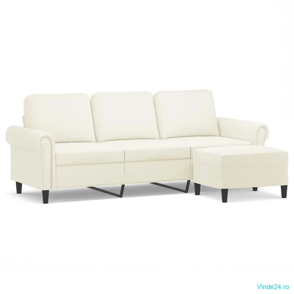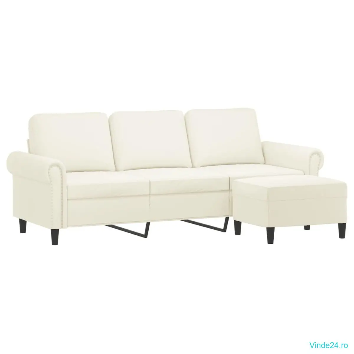 vidaXL Canapea cu 3 locuri și taburet, crem, 180 cm, catifea