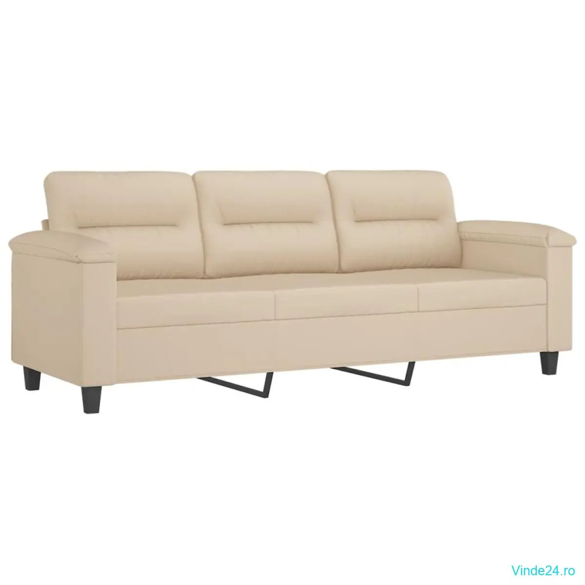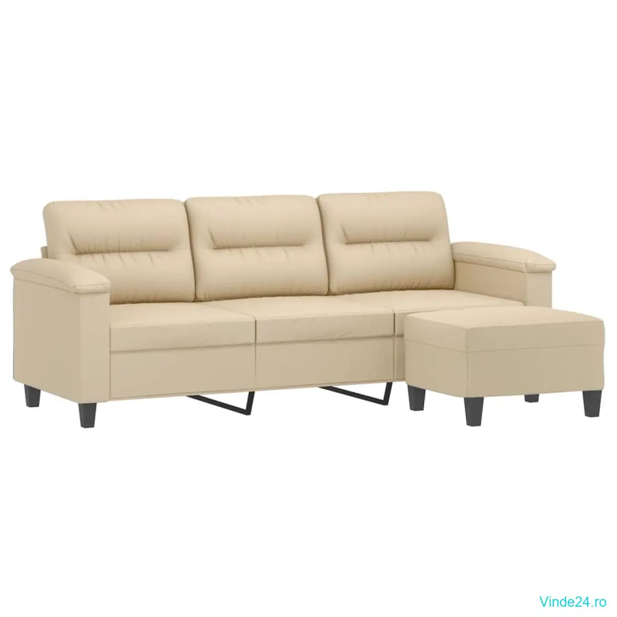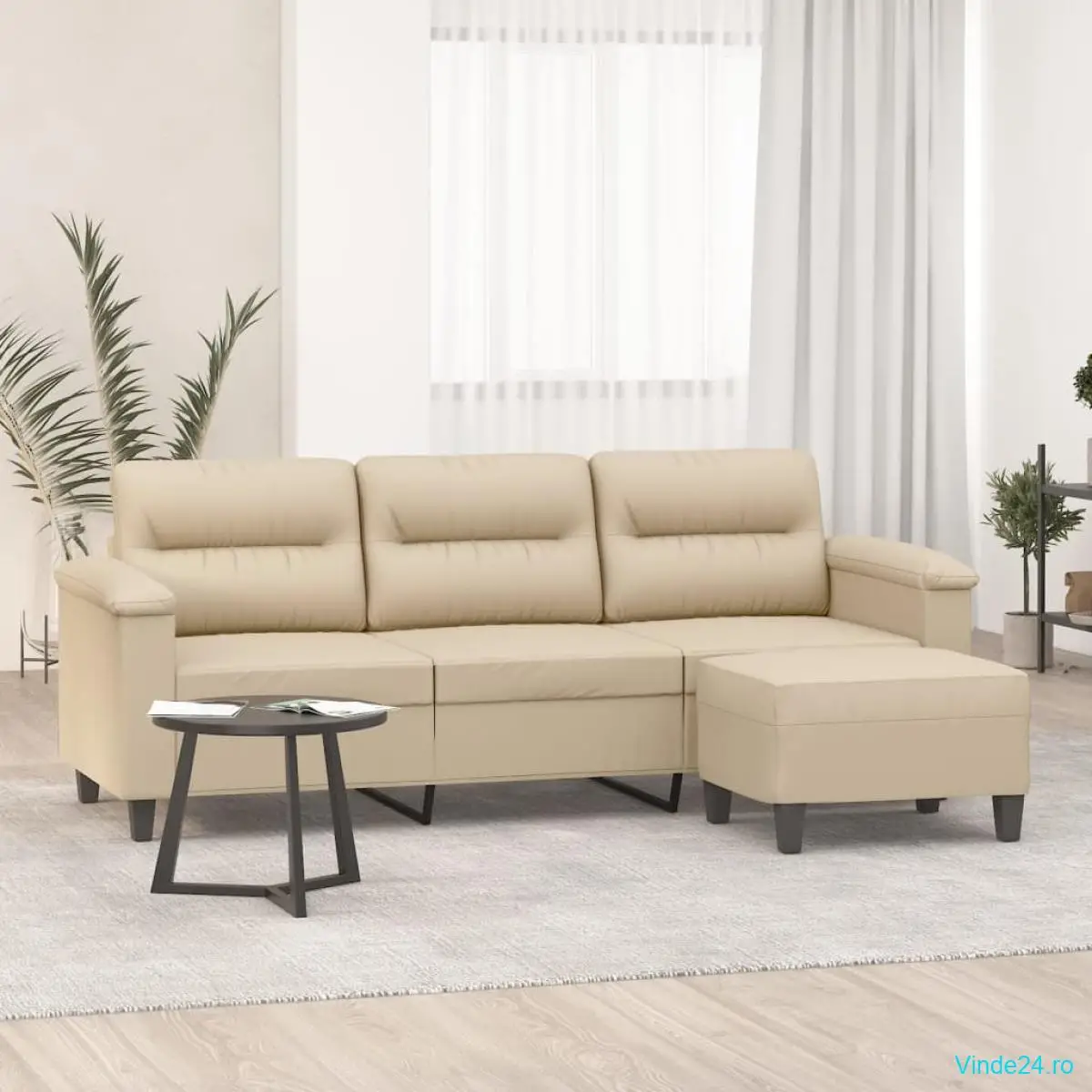 vidaXL Canapea cu 3 locuri și taburet, crem, 180 cm, microfibră