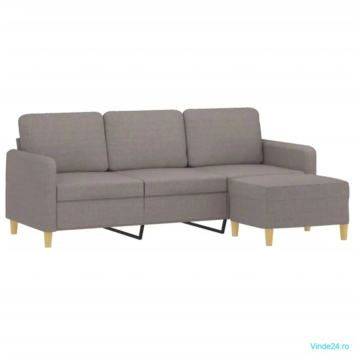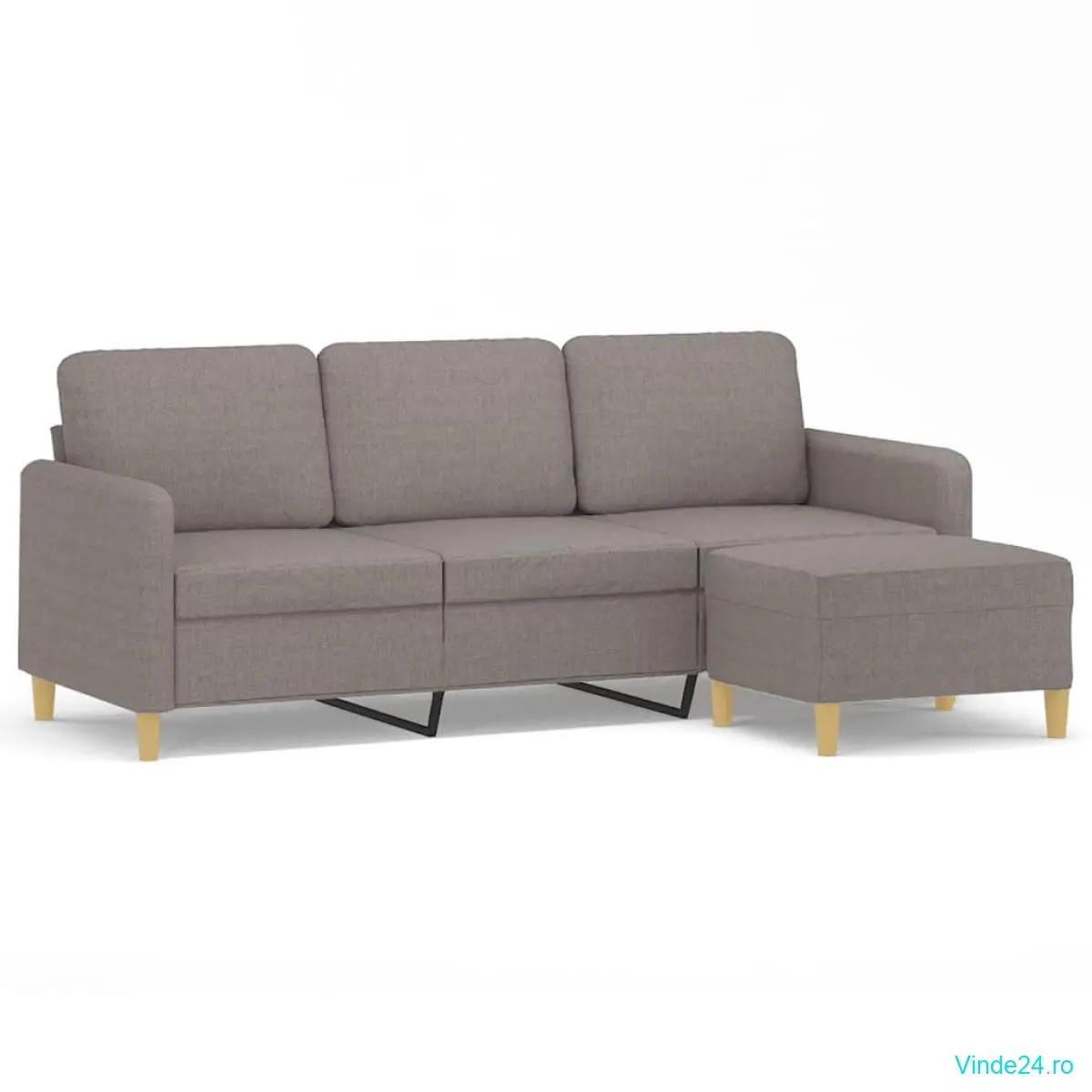 vidaXL Canapea cu 3 locuri și taburet, taupe, 180 cm, material textil