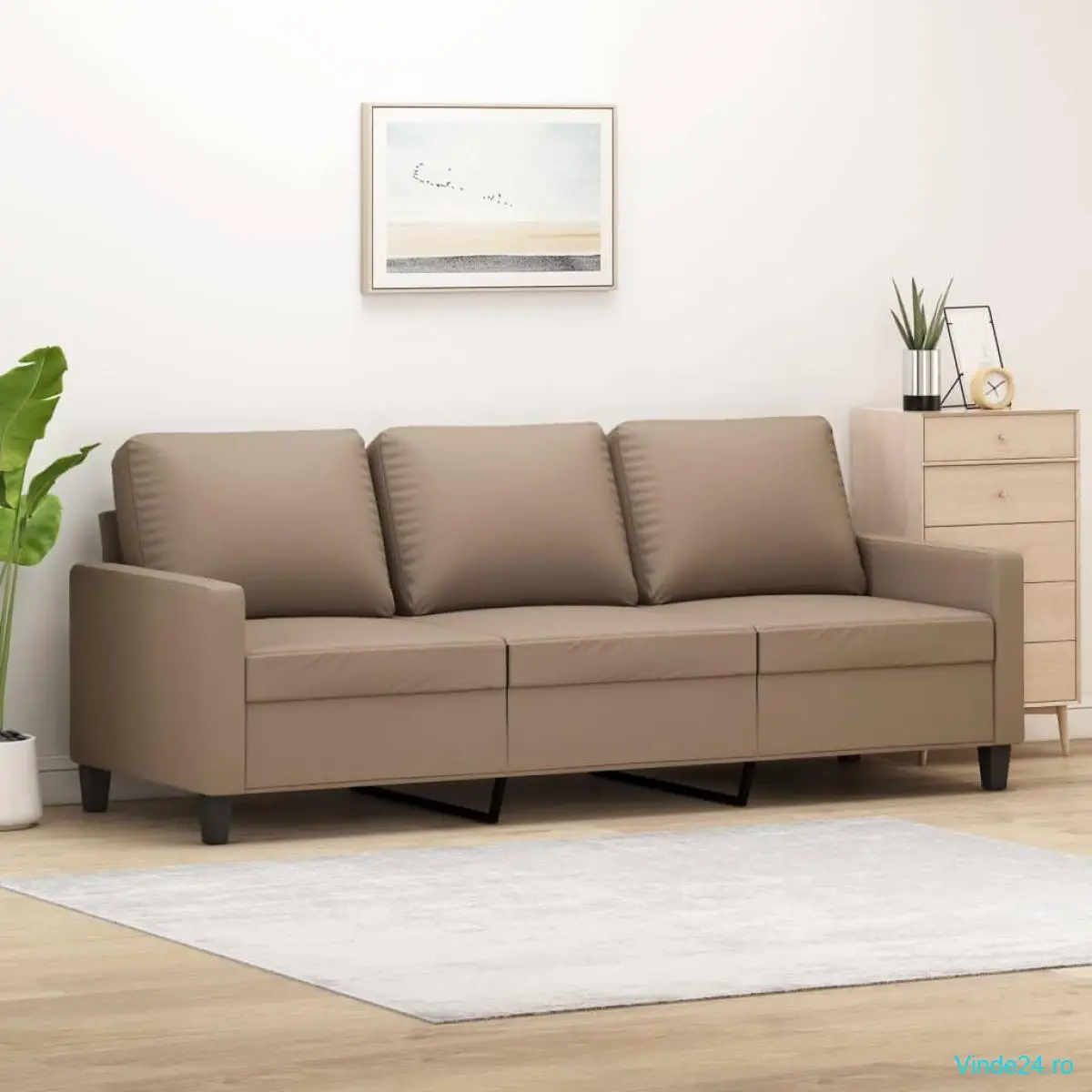 vidaXL Canapea cu 3 locuri, cappuccino, 180 cm, piele ecologică