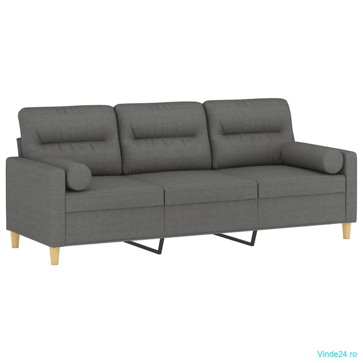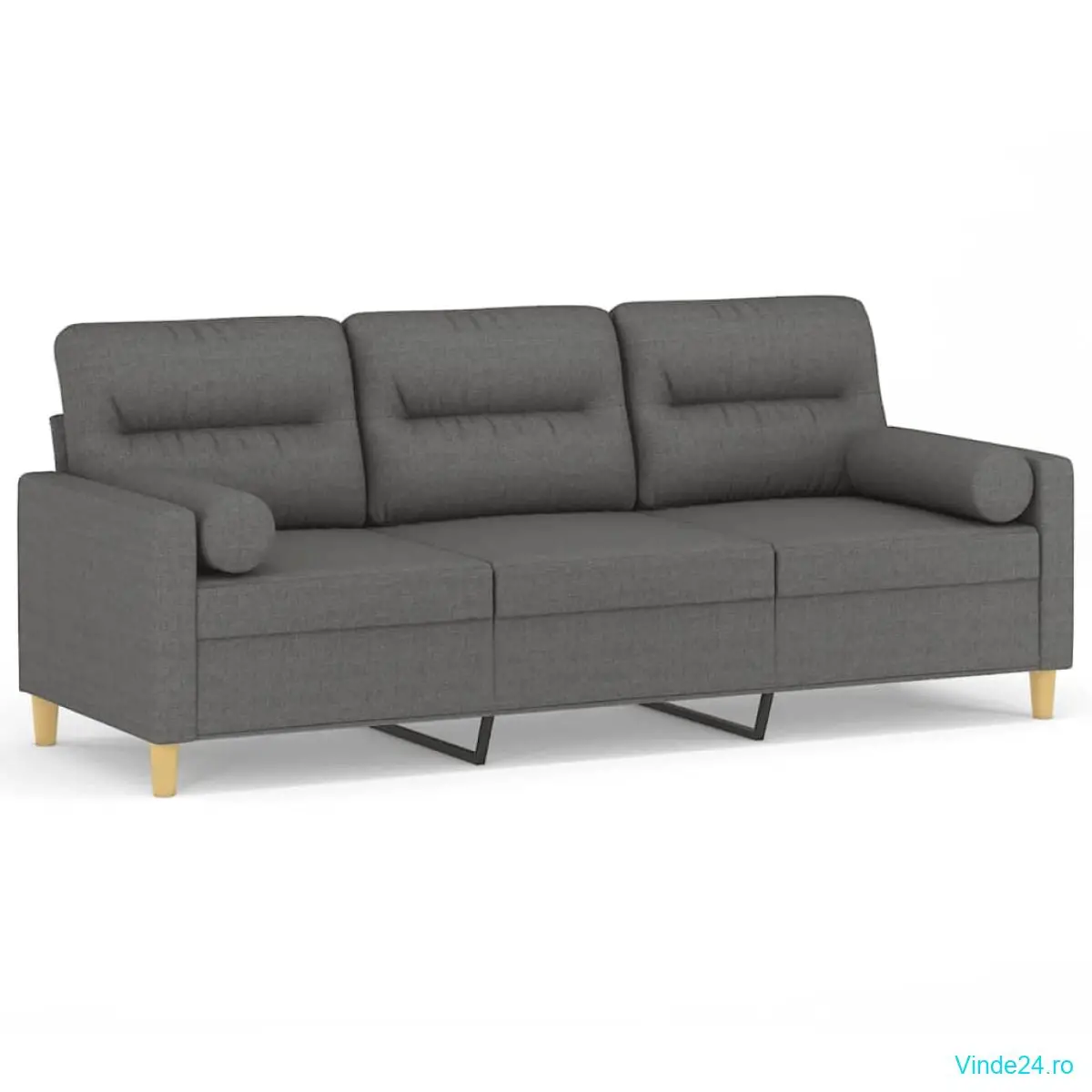 vidaXL Canapea cu 3 locuri cu pernuțe, gri închis, 180 cm, textil