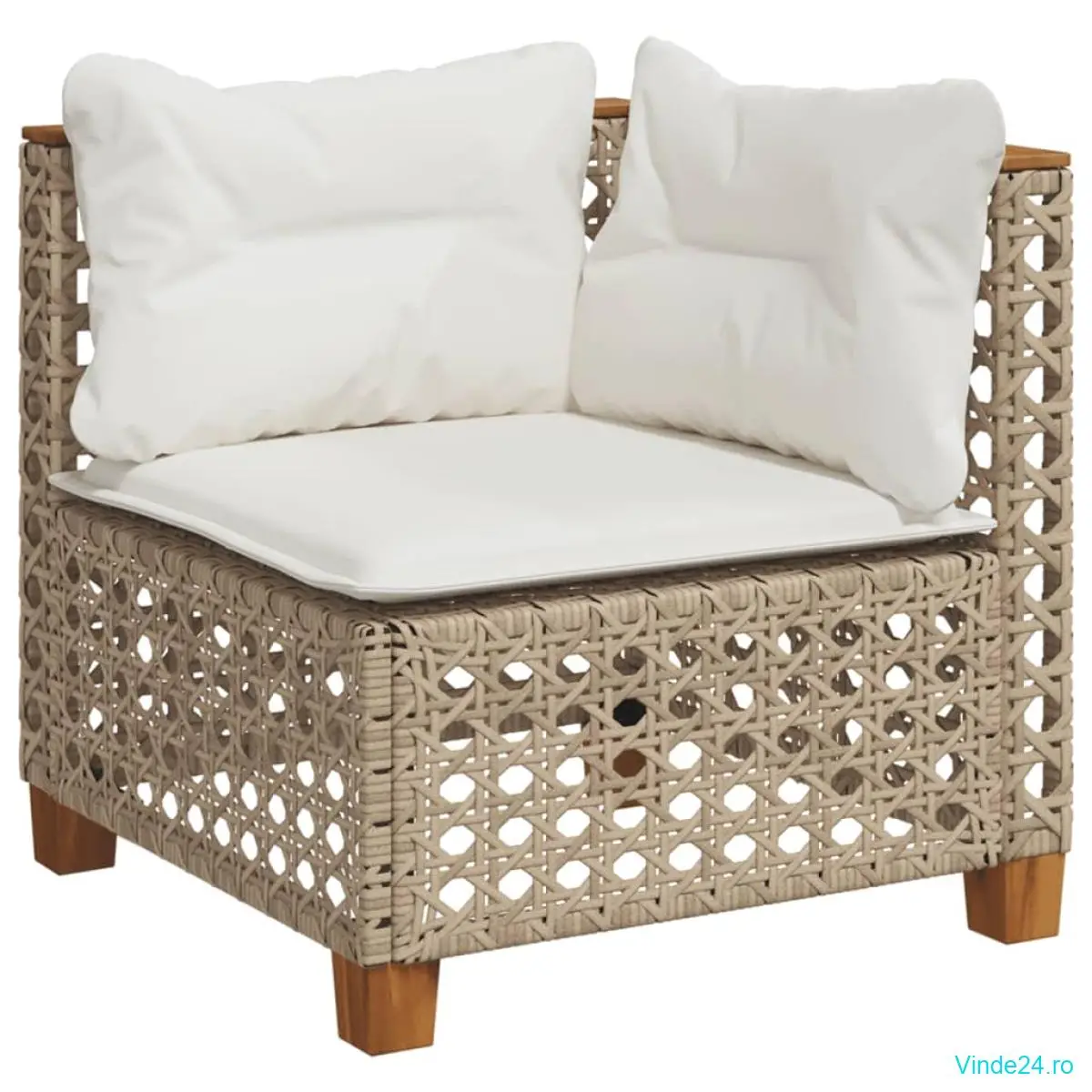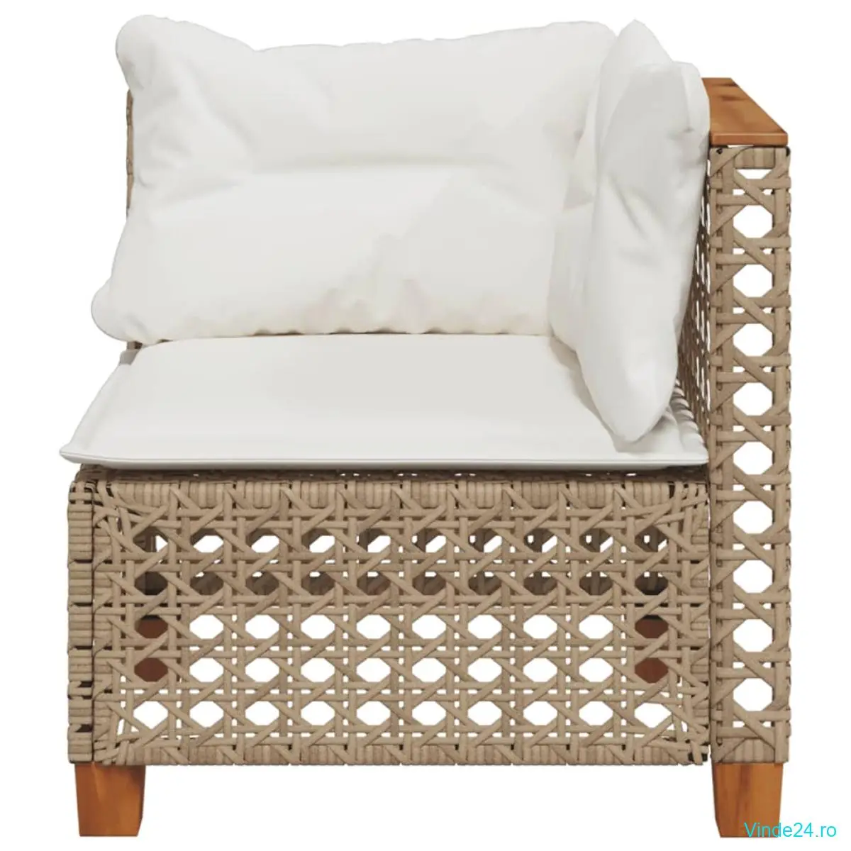 vidaXL Canapea de colț de grădină cu perne, bej, poliratan