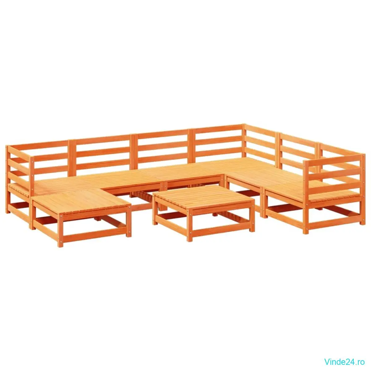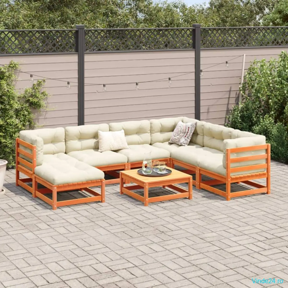 vidaXL Canapea de grădină cu 8 locuri, maro ceruit, lemn masiv de pin