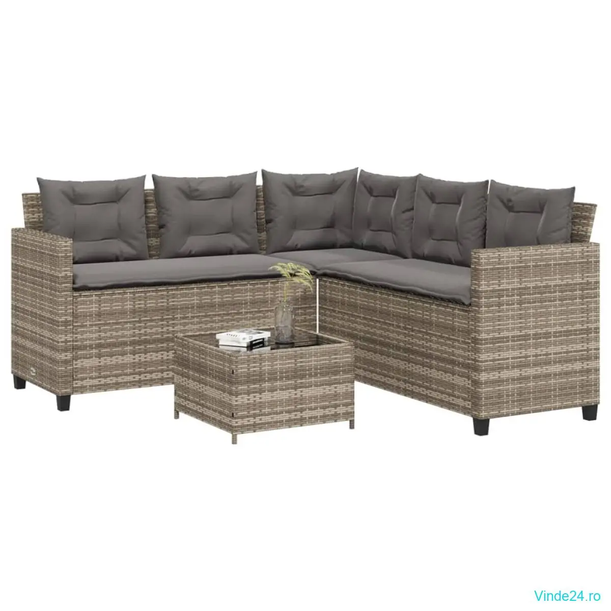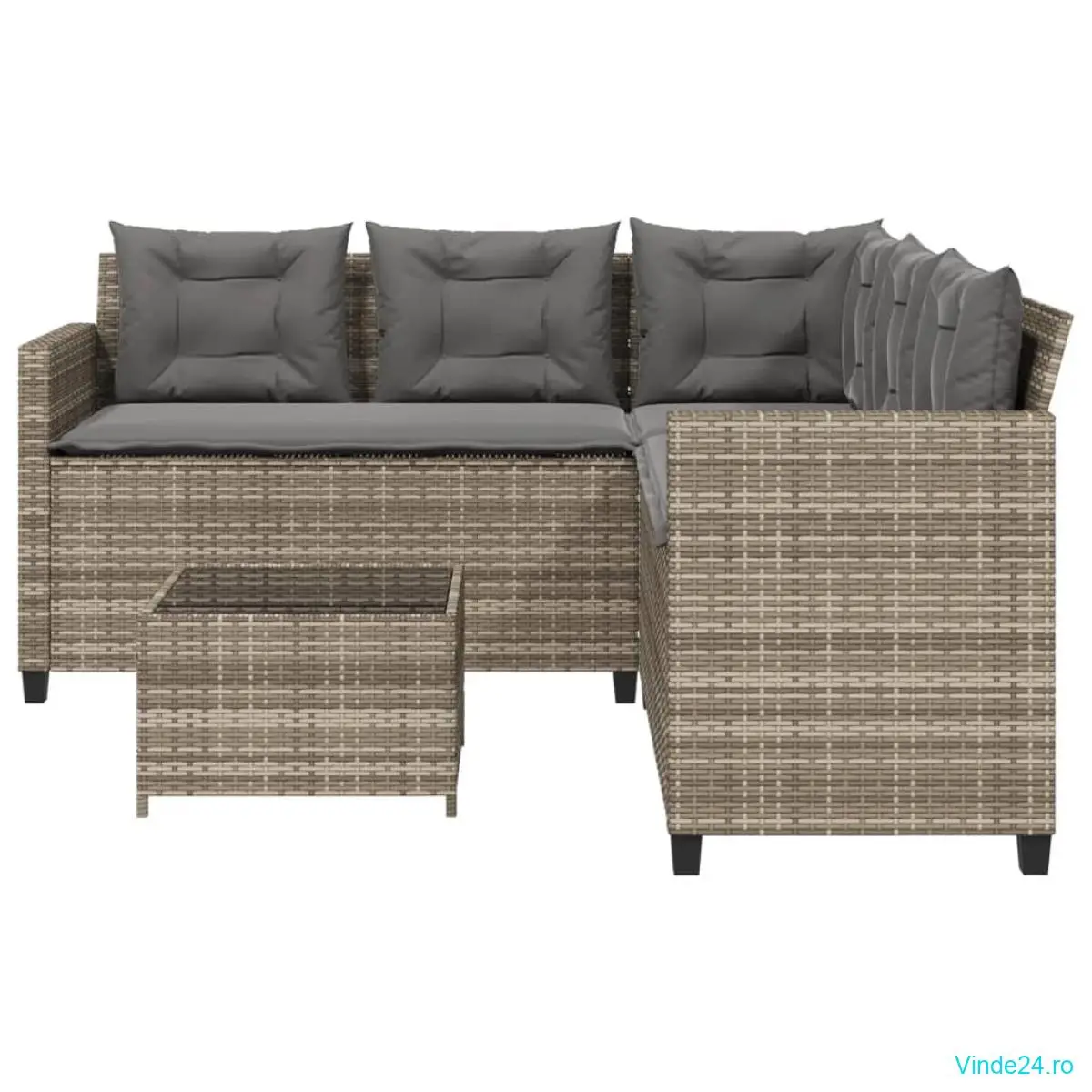 vidaXL Canapea de grădină cu masă/perne, formă de L, poliratan gri