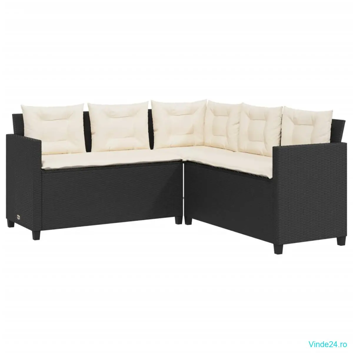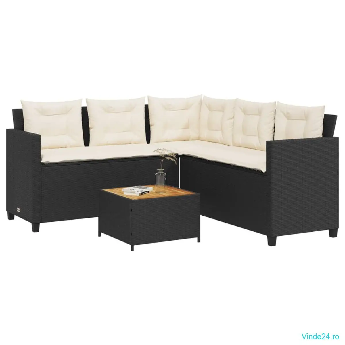 vidaXL Canapea de grădină cu masă/perne, formă de L, poliratan negru