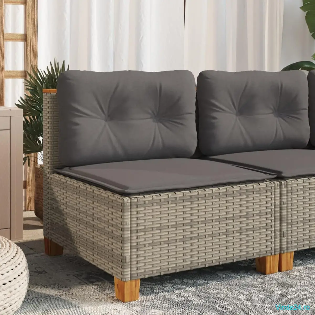 vidaXL Canapea de grădină fără cotiere, cu perne, gri, poliratan