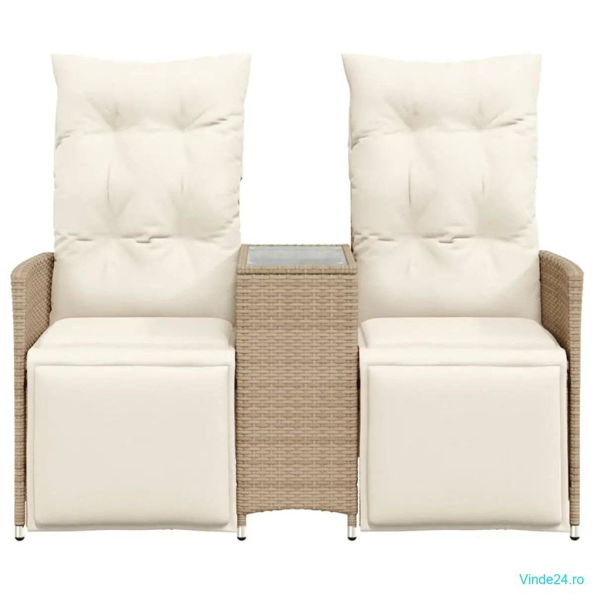 vidaXL Canapea de grădină rabatabilă 2 locuri, cu masă, bej, poliratan