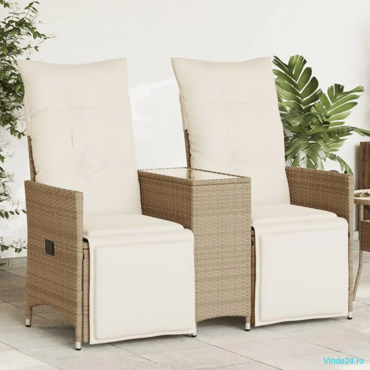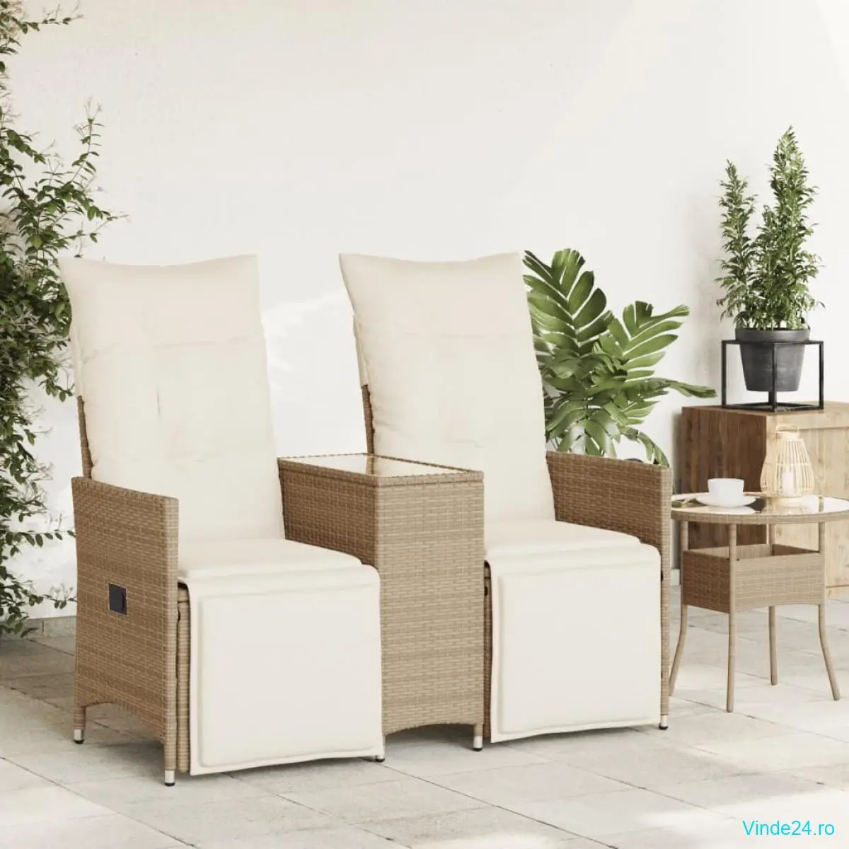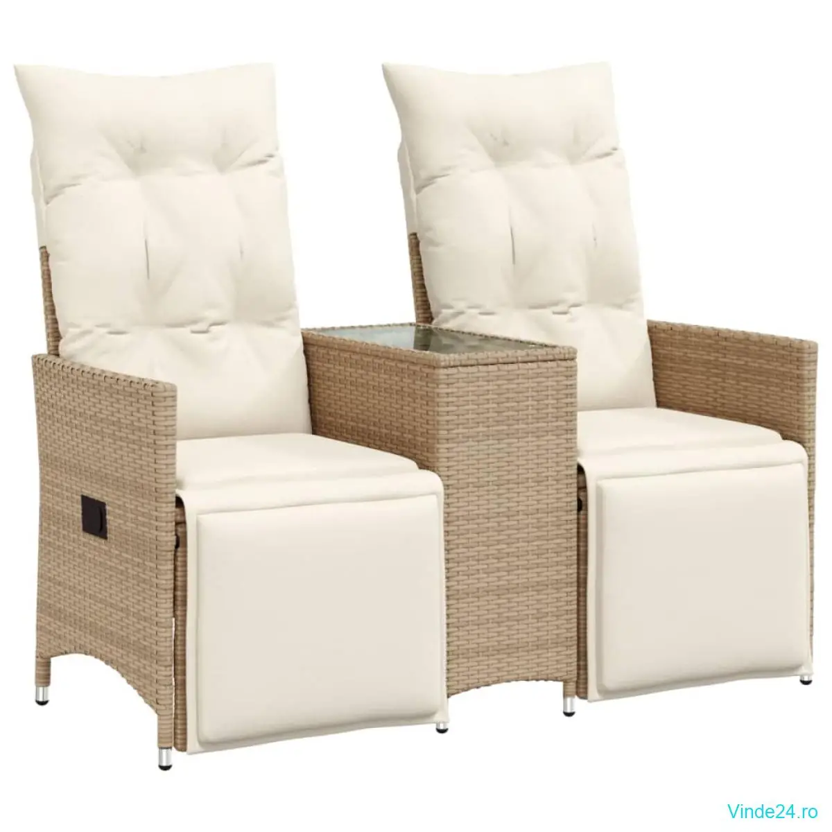 vidaXL Canapea de grădină rabatabilă 2 locuri, cu masă, bej, poliratan