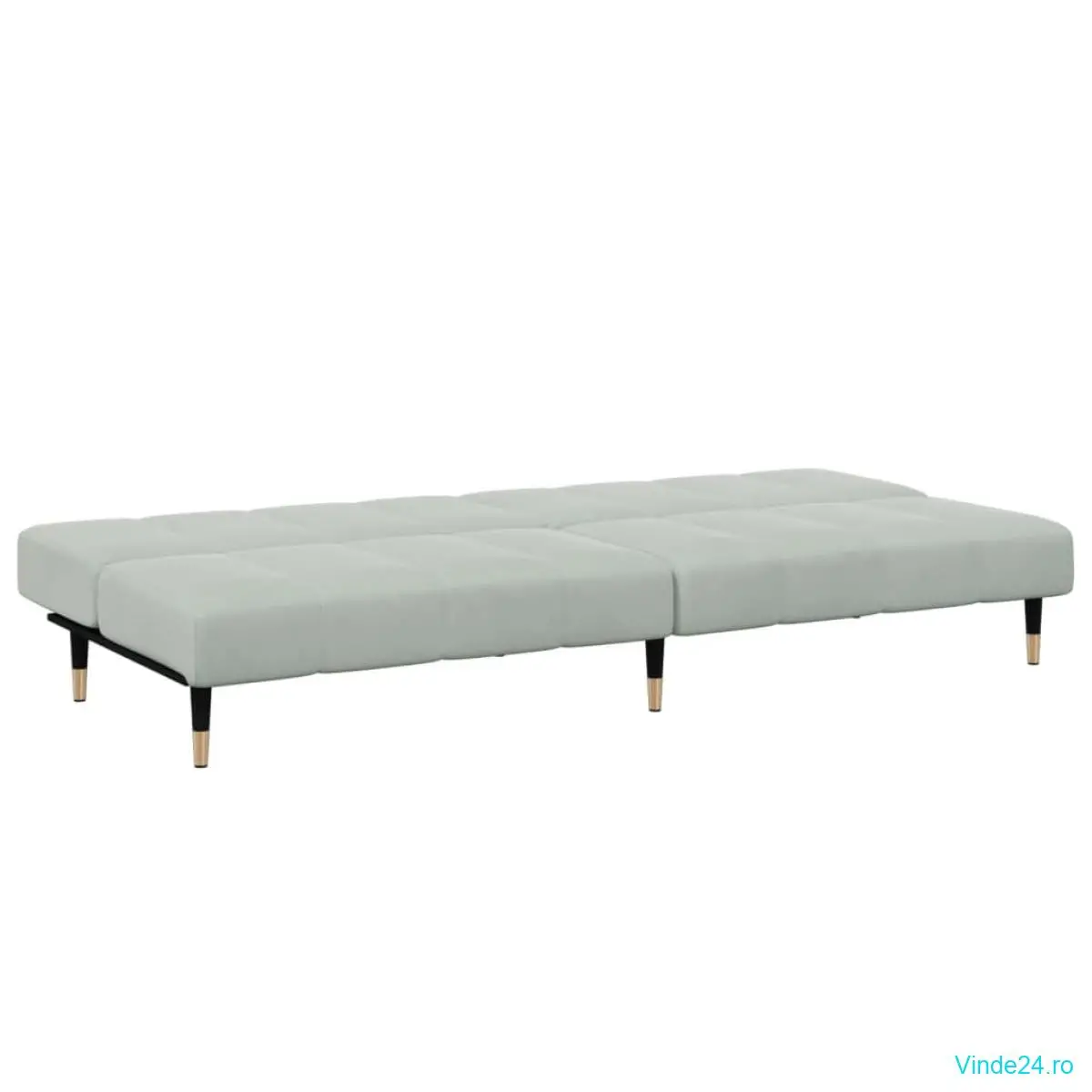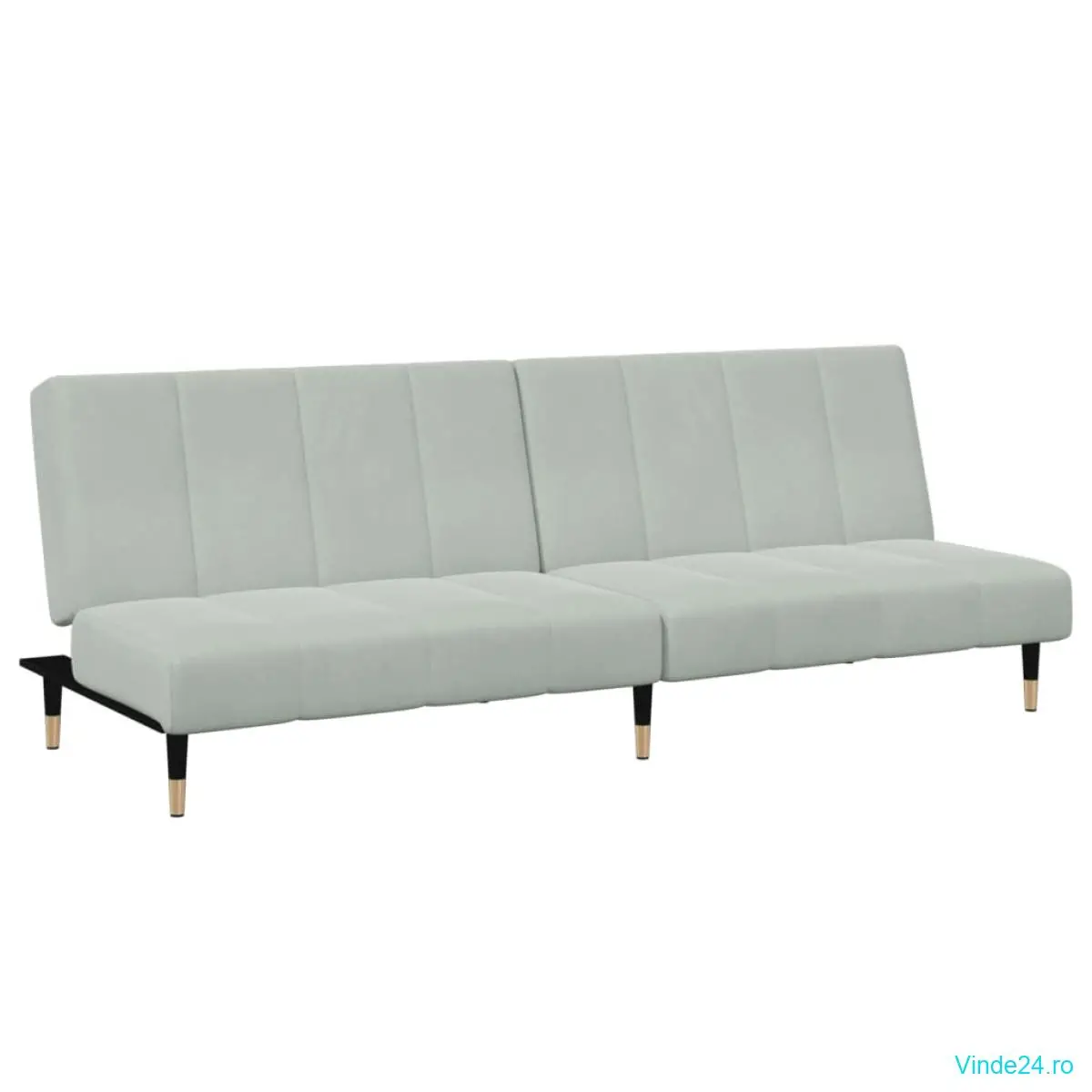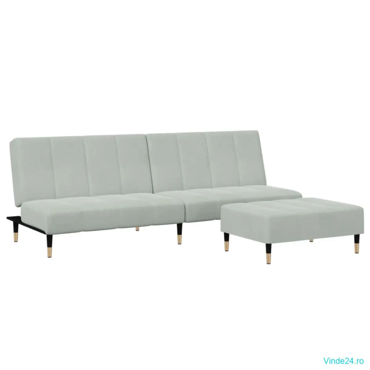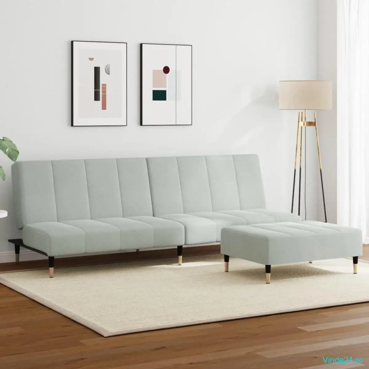 vidaXL Canapea extensibilă cu taburet, 2 locuri, gri deschis, catifea