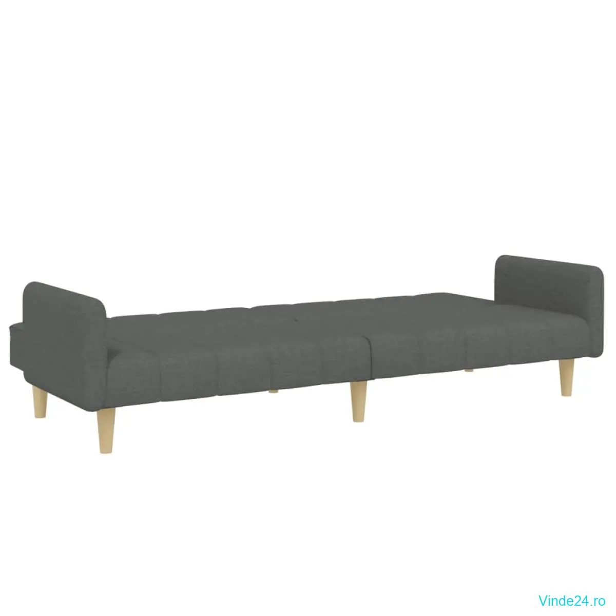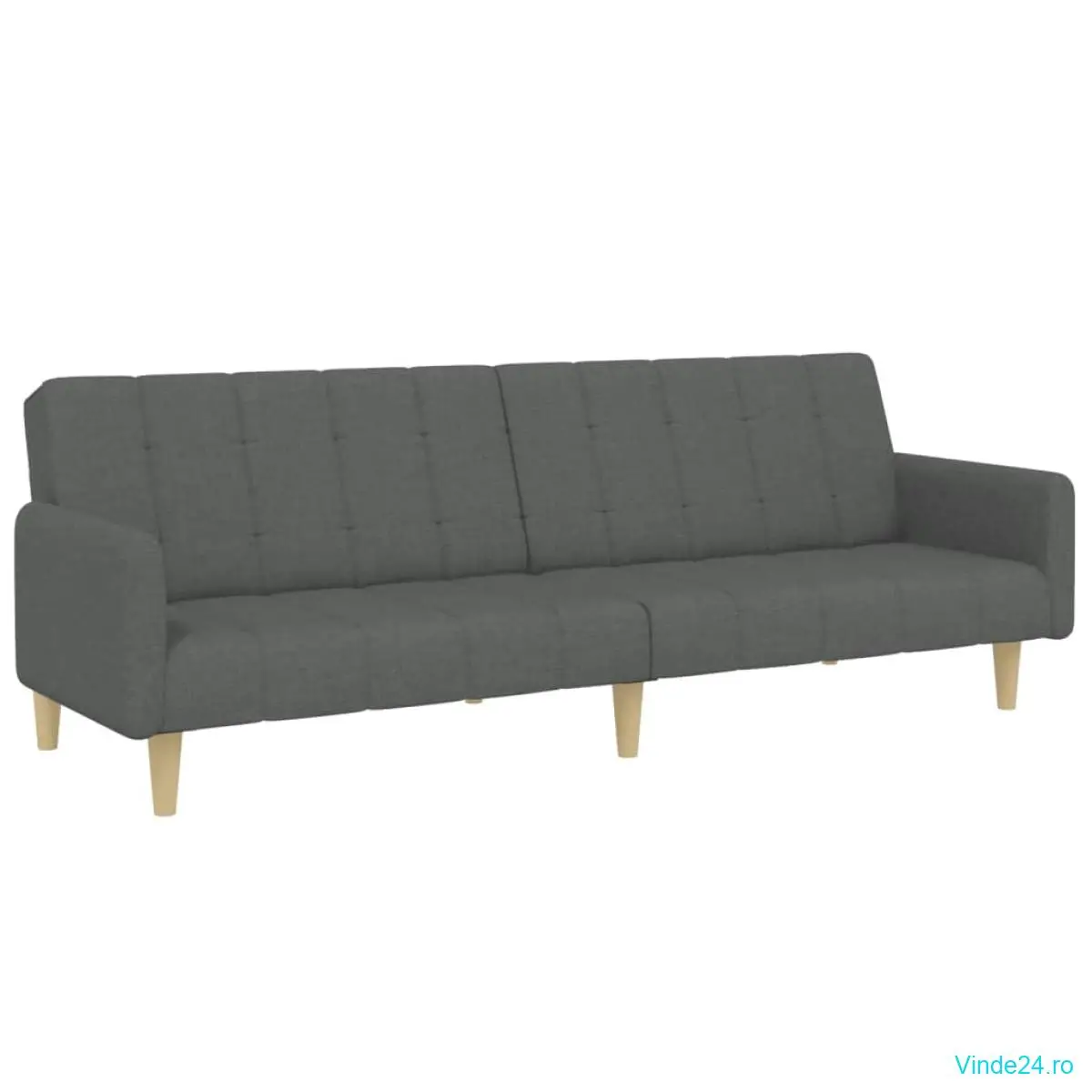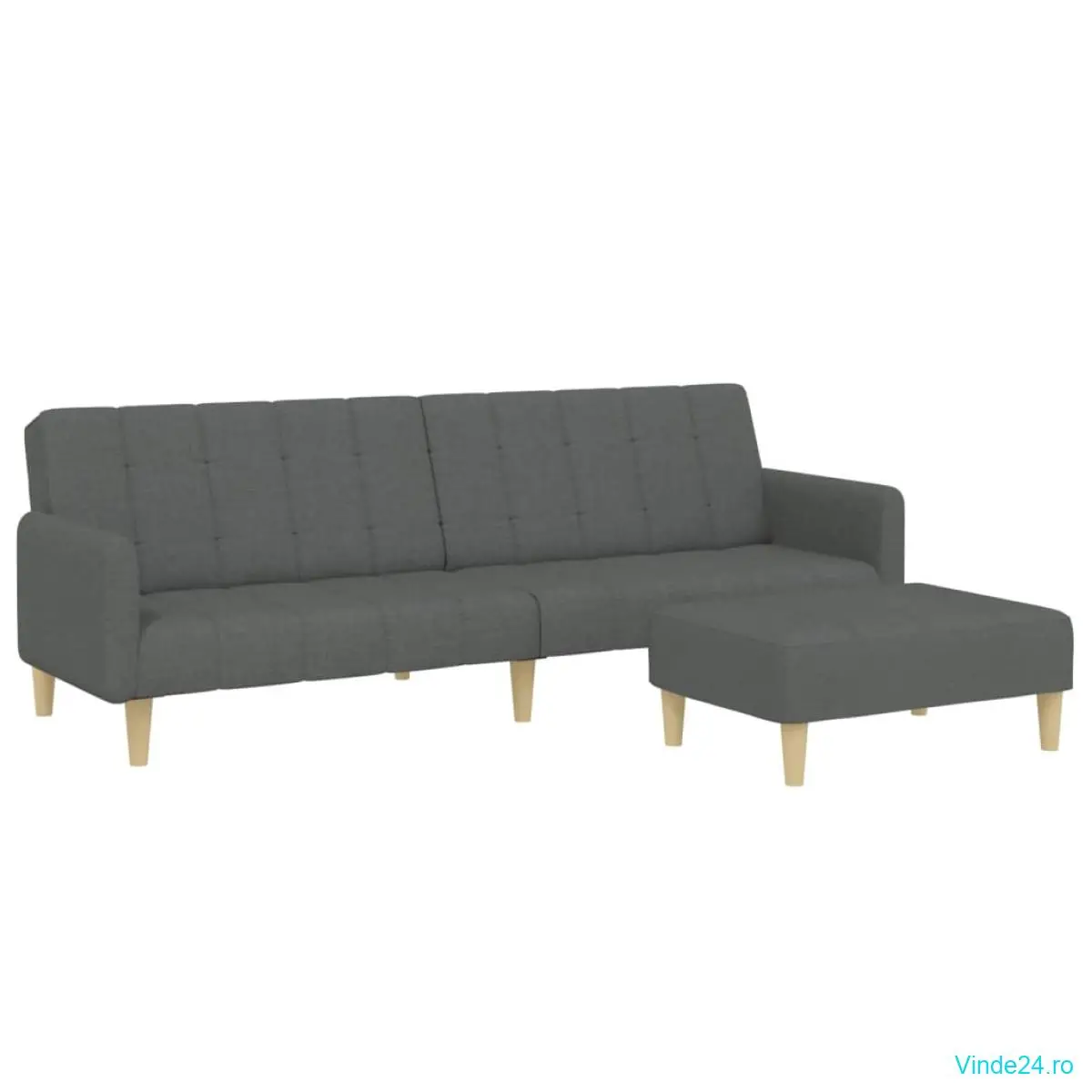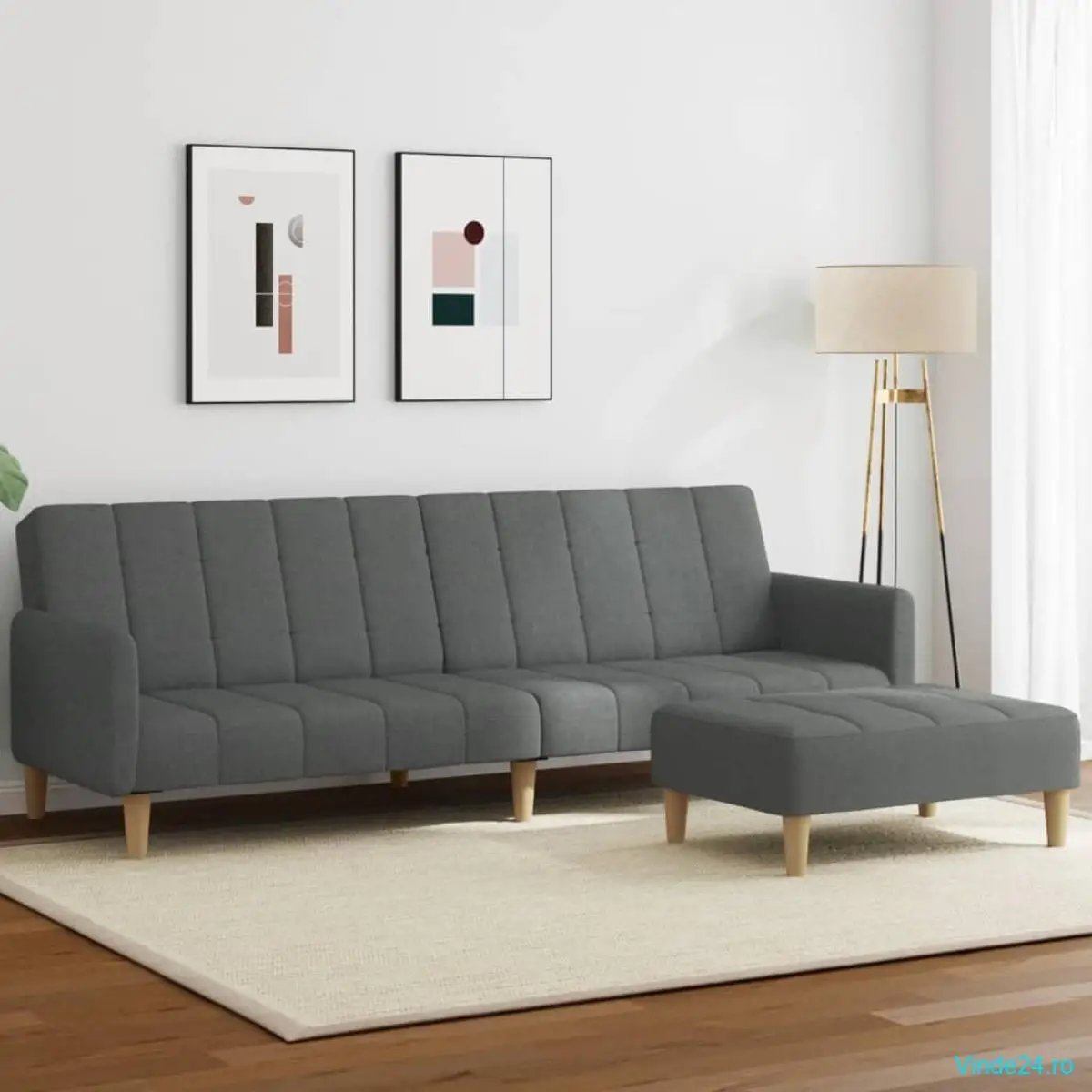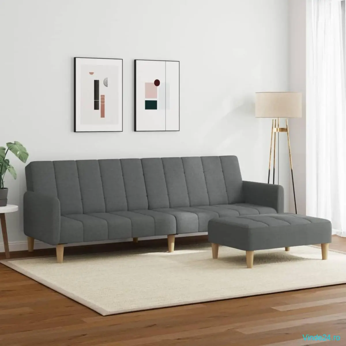 vidaXL Canapea extensibilă cu taburet, 2 locuri, gri închis, textil