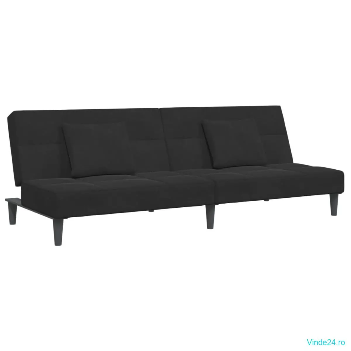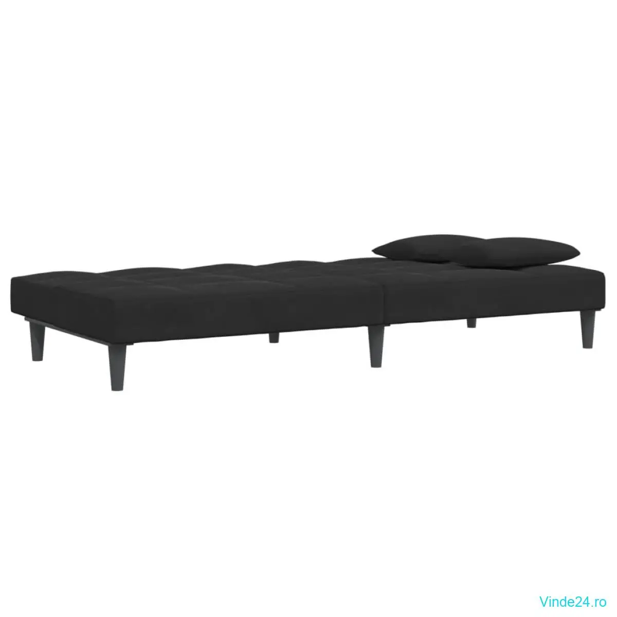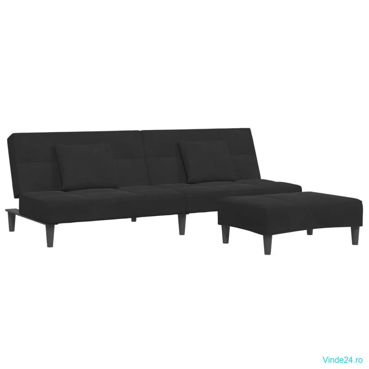 vidaXL Canapea extensibilă cu taburet, 2 locuri, negru, catifea