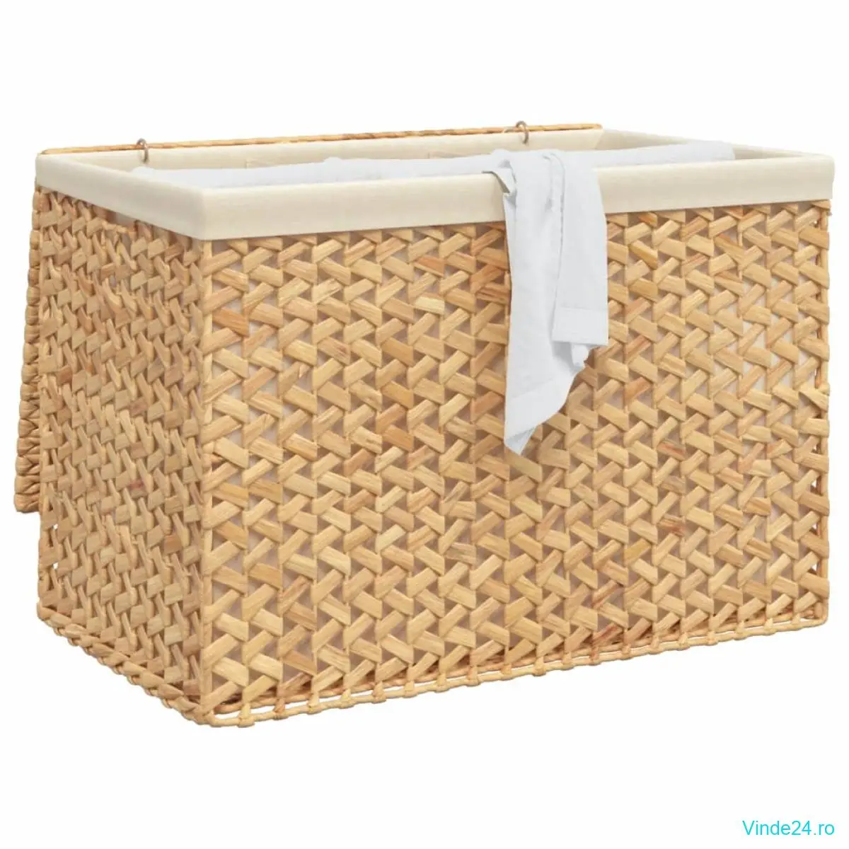 • Material durabil: Coșul de rufe este fabricat din zambile de apă cu un cadru metalic puternic, ceea ce îl face robust și durabil.