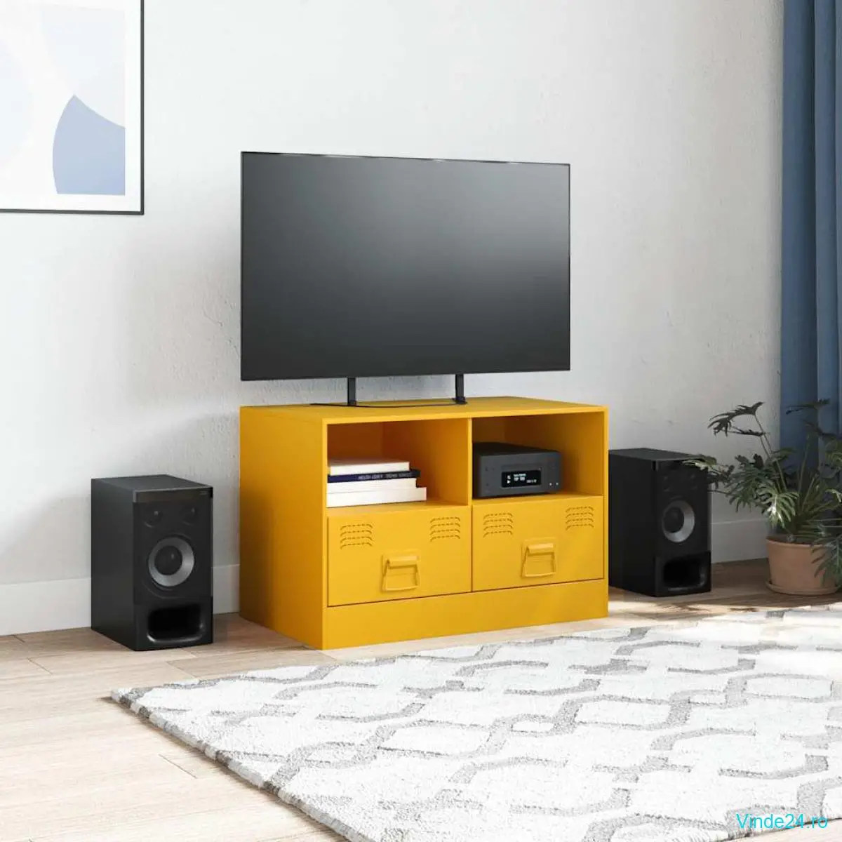 vidaXL Comodă TV, galben muștar, 67x39x44 cm, oțel