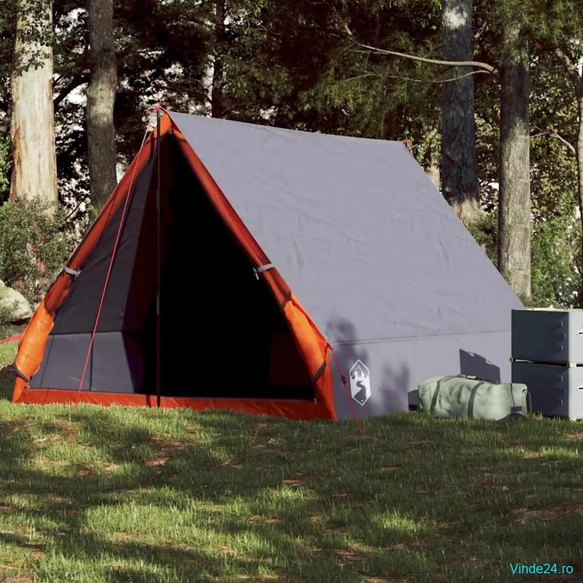 vidaXL Cort camping cu cadru A 2 persoane, gri, impermeabil